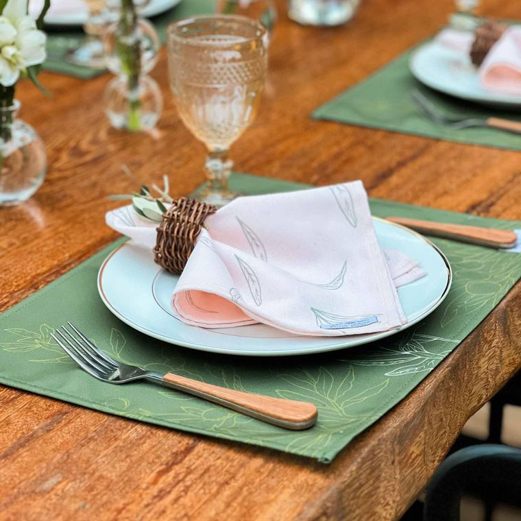 - Roupas de mesa são peças delicadas, portanto a orientação é lavagem a mão e sem molho, não colocar na secadora.
