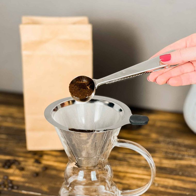 Colher Medidora para Café com Cabo Prendedor de Aço Inox