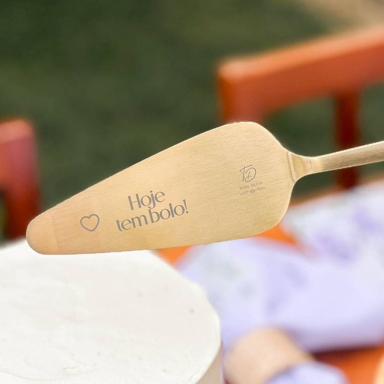 PRODUTO A PRONTA ENTREGA COM ENVIO IMEDIATO Espátula para Bolo de Aço Inox Champanhe - Hoje Tem Bolo Aperfeiçoe o momento de servir seus bolos com a Espátula de Aço Inox para Bolo . Este utensílio é a escolha ideal para quem busca qualidade, durabilidade e um toque de elegância na hora de apresentar suas criações culinárias. Personalizada exclusivamente com a frase "Hoje tem bolo!" ESPECIFICAÇÕES DO PRODUTO - Material - Inox - Dimensões - Comprimento 27,5cm x Largura 5,5cm - Cor - Prata- Contém - 1 Espátula para Bolo de Aço Inox Champanhe - Hoje Tem Bolo CUIDADOS - Lave com o lado macio da esponja e use detergente neutro. - Para secar, utilize um pano seco e macio. - Evite o uso de produtos abrasivos. GARANTIA Em condições normais de uso, este produto tem garantia de 90 dias contra defeitos de material e fabricação, mediante apresentação da nota fiscal de compra. Má conservação, manuseio inadequado, quedas ou quaisquer outras avarias produzidas pelo uso incorreto, a garantia oferecida perde a validade. IMAGENS MERAMENTE ILUSTRATIVAS