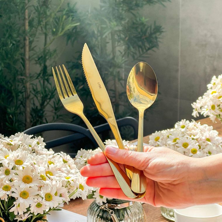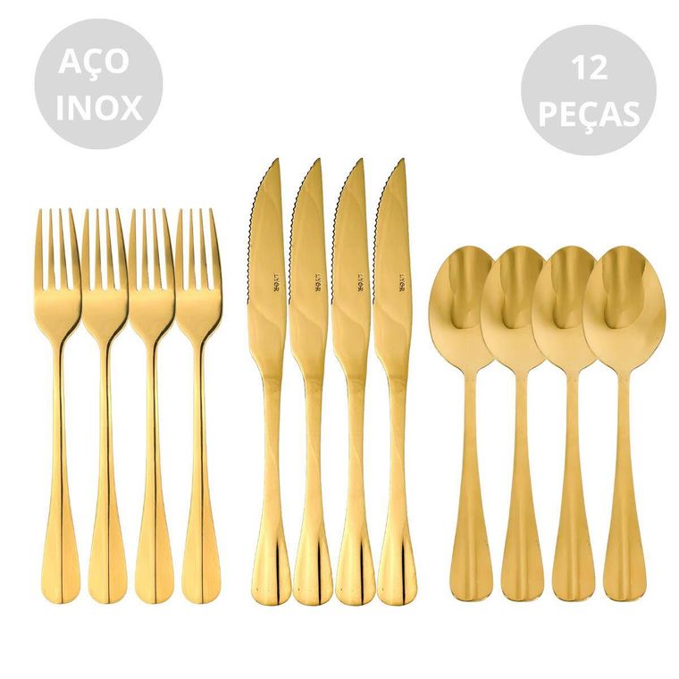 Faqueiro 12 Peças De Aço Inox Dourado Positano Premium - Lyor