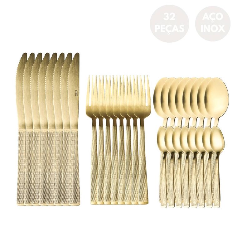 Faqueiro 32 Peças de Aço Inox Champanhe Santorini - Lyor