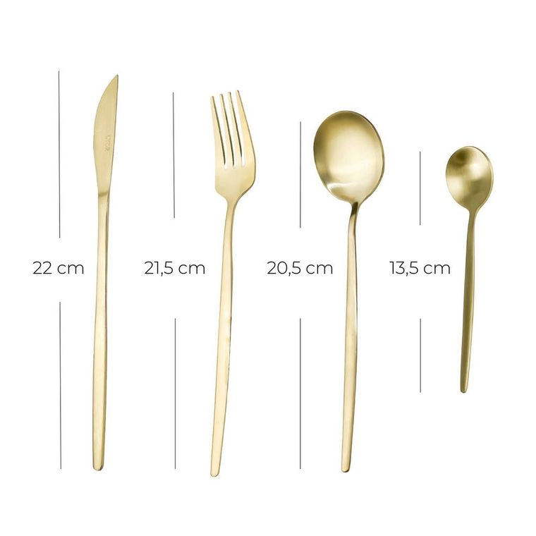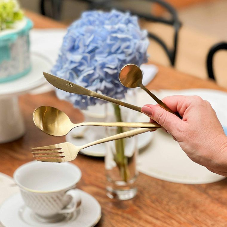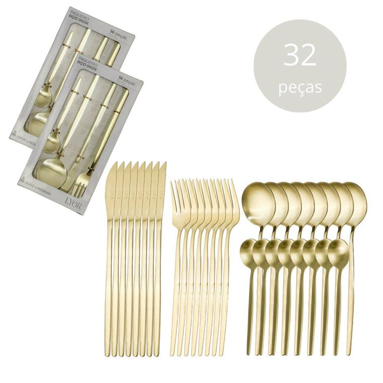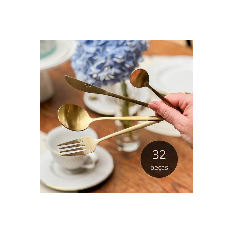 PRODUTO A PRONTA ENTREGA COM ENVIO IMEDIATO Faqueiro 32 Peças de Aço Inox Ópera Champanhe - Lyor Desfrute de refeições memoráveis em grande estilo com o Faqueiro 16 Peças de Aço Inox Ópera Champanhe da Lyor. Com um design sofisticado e materiais de alta qualidade, este faqueiro elevará a experiência à mesa. 16 Peças Incluídas, este conjunto contém tudo o que você precisa para servir até quatro pessoas, incluindo garfos, facas, colheres e colheres de chá. Fabricada em aço inox,é resistente, durável e fácil de limpar, garantindo longa vida útil e desempenho consistente. ESPECIFICAÇÕES DO PRODUTO - Material - Inox - Dimensões da colher de sopa - Comprimento 21cm x Largura 5cm - Dimensões da colher de sobremesa - Comprimento 13cm x Largura 3cm - Dimensões do garfo - Comprimento 21,5cm x Largura 3cm - Dimensões da faca - Comprimento 22cm x Largura 1,5cm - Cor - Champanhe - Contém - 8 facas, 8 garfos, 8 colheres de sobremesa e 8 colheres de sopa CUIDADOS - Lave com detergente neutro e enxágue com água em abundância. - Para secar, utilize um pano seco e macio. - Evite o uso de produtos abrasivos. - Não levar ao micro-ondas. - Não levar a lava louças. GARANTIA Em condições normais de uso, este produto tem garantia de 90 dias contra defeitos de material e fabricação, mediante apresentação da nota fiscal de compra. Má conservação, manuseio inadequado, quedas ou quaisquer outras avarias produzidas pelo uso incorreto, a garantia oferecida perde a validade. IMAGENS MERAMENTE ILUSTRATIVAS