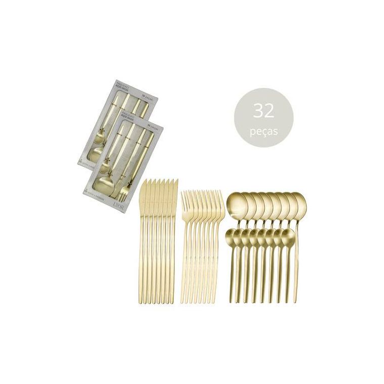 Faqueiro 32 Peças De Aço Inox Ópera Champanhe Premium Lyor