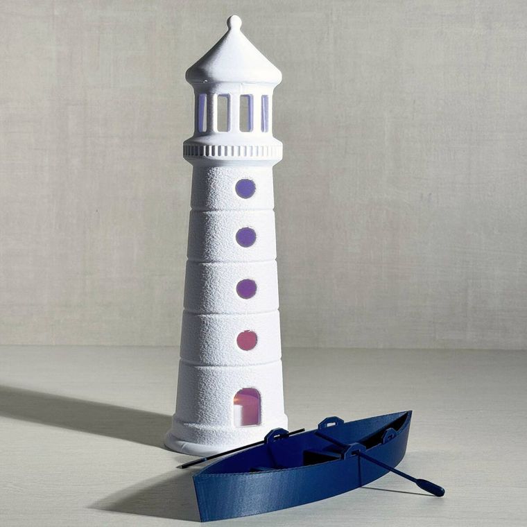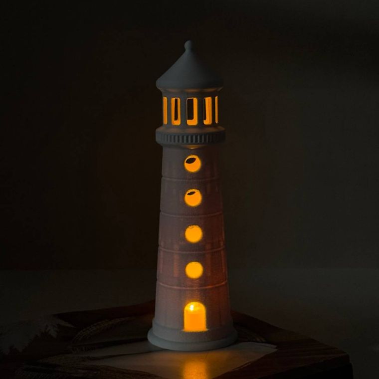 - Contém - 1 Farol Decorativo Porta Vela Branco e 1 Barco com 2 Remo