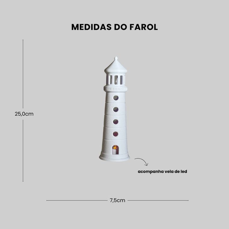 - Dimensões do Farol - Altura 25,0cm X Largura 7,5cm x Comprimento 7,5cm.