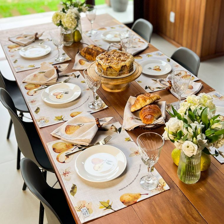 - Roupas de mesa são peças delicadas, portanto a orientação é lavagem a mão e sem molho, não colocar na secadora.