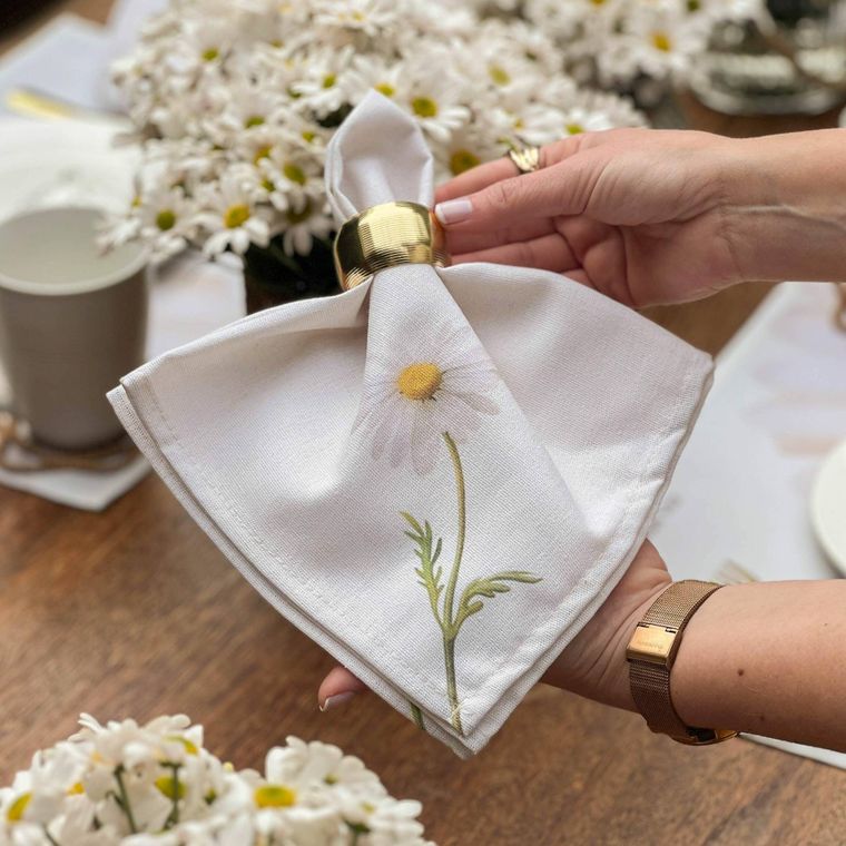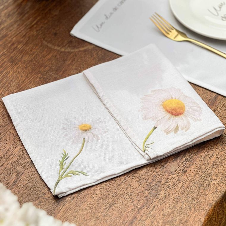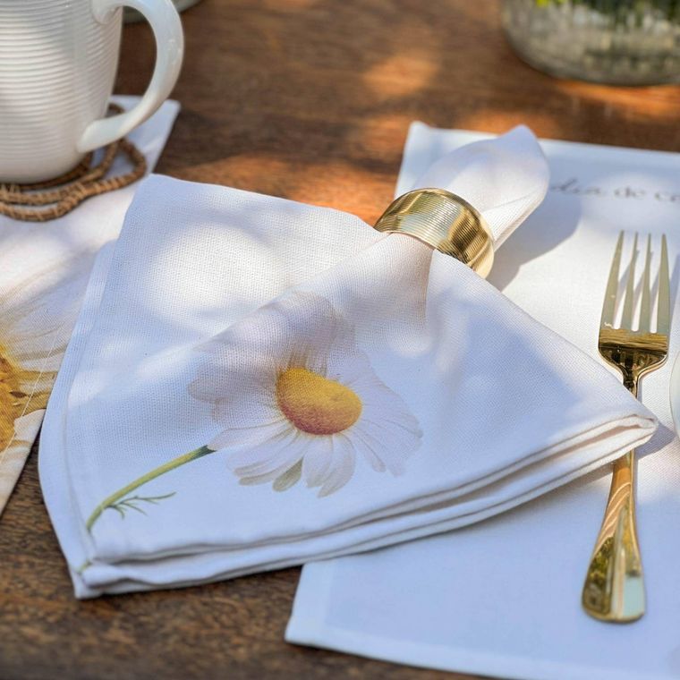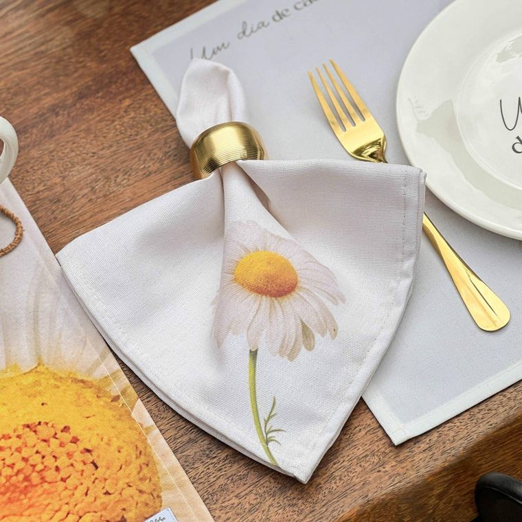 - Contém - 1 Guardanapo em Linho Misto - Coleção Margaridas