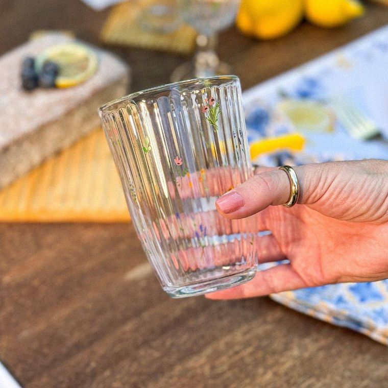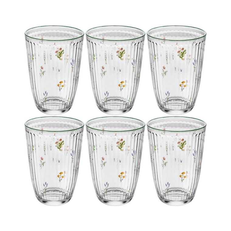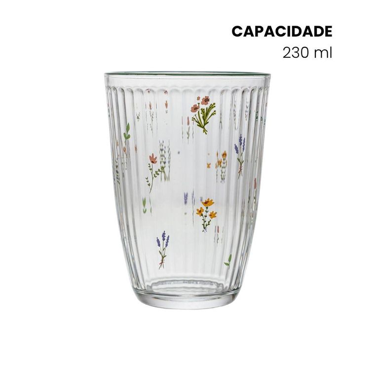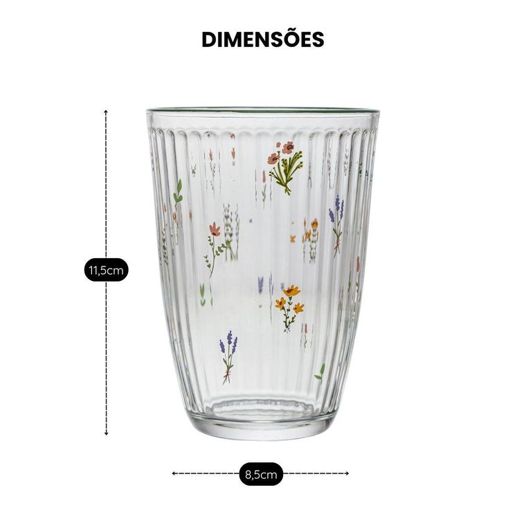 Conjunto com 6 unidades do Copo Alto Florence, feito em vidro transparente com delicados detalhes florais que trazem charme e elegância para a mesa. Possui design canelado moderno, ideal para servir água, sucos, refrigerantes e outras bebidas no dia a dia ou em ocasiões especiais. Além de resistente, o copo combina praticidade e estilo, sendo perfeito para quem gosta de uma mesa bonita e bem apresentada.