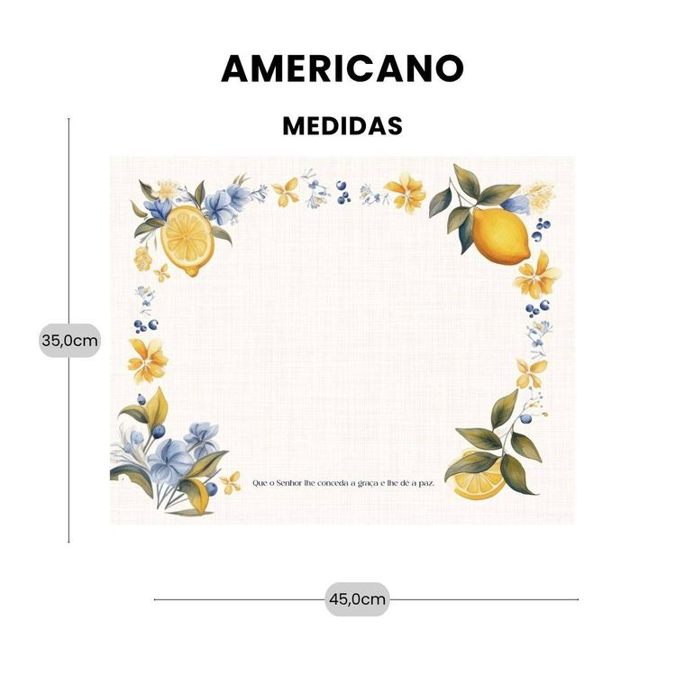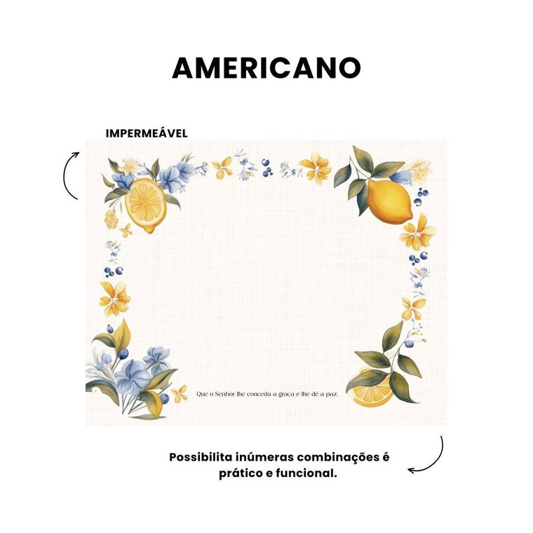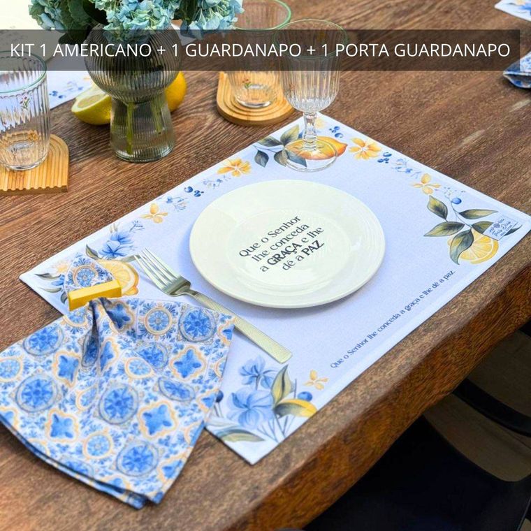 Kit 1 Americano +1 Guardanapo +1 Porta Guardanapo Limão Mediterrâneo