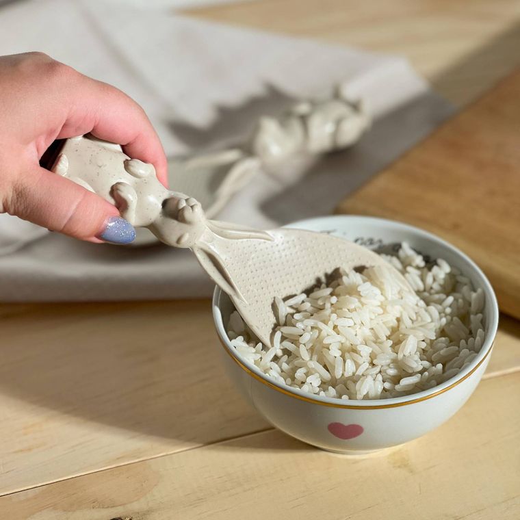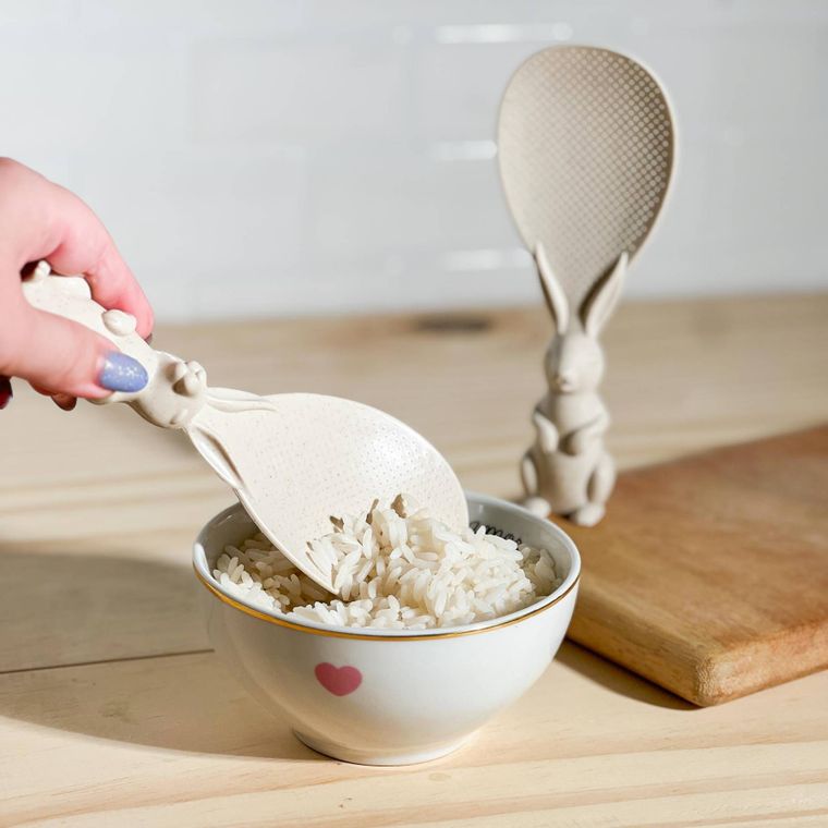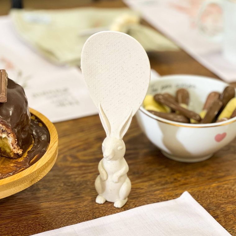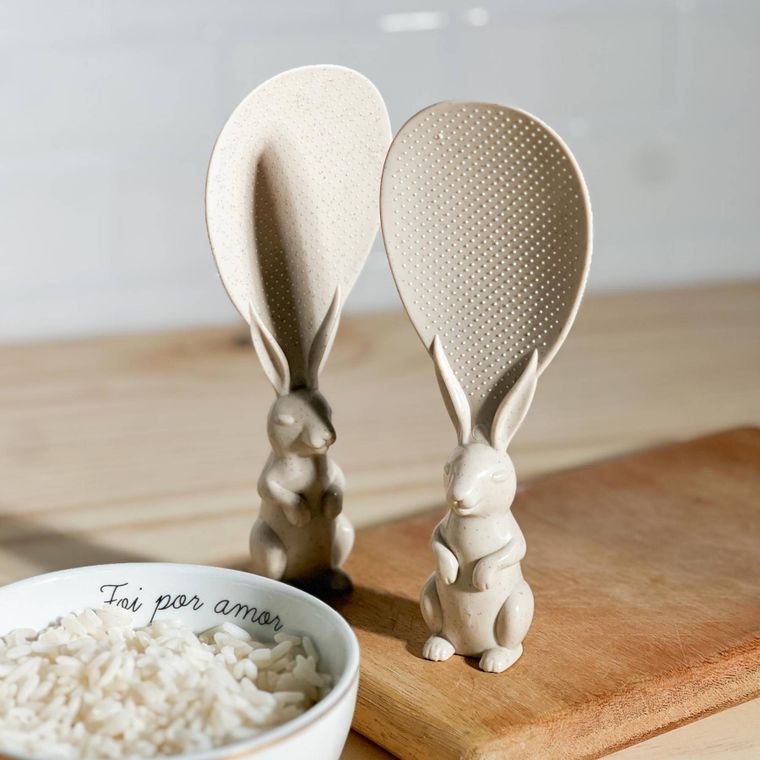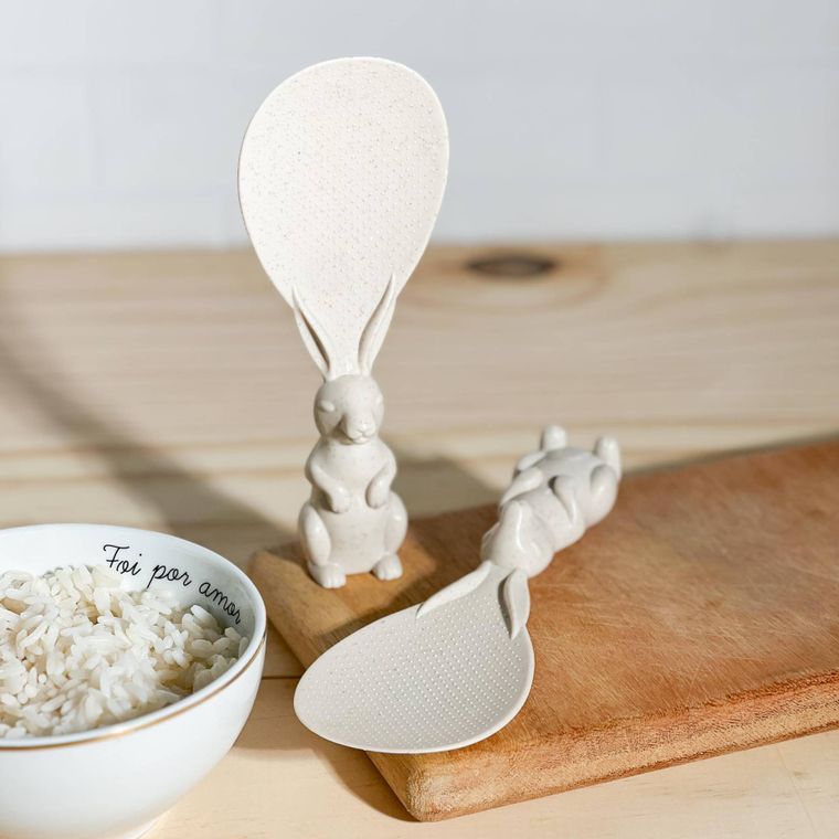 A Colher Coelho veio para acrescentar um toque de criatividade a sua mesa, podendo ser usada para servir diversas comidas. Ela possui uma superfície texturizada que ajuda a impedir que os alimentos grudem, facilitando na hora da limpeza. Além de ter um ótimo tamanho para servir alimentos como arroz, farofa, sobremesas etc. Ela também fica linda para utilizar como decoração porque seu cabo permite que ela fique em pé em mesas e bancadas.