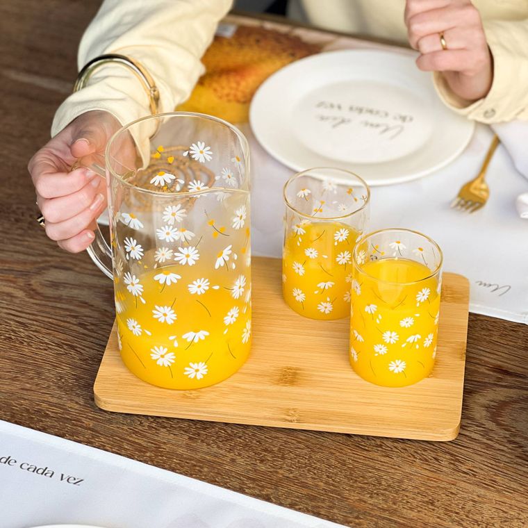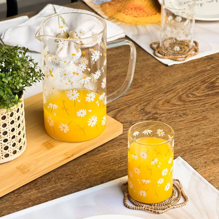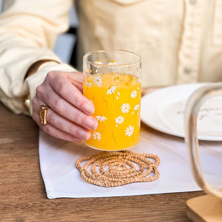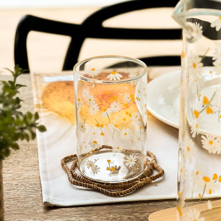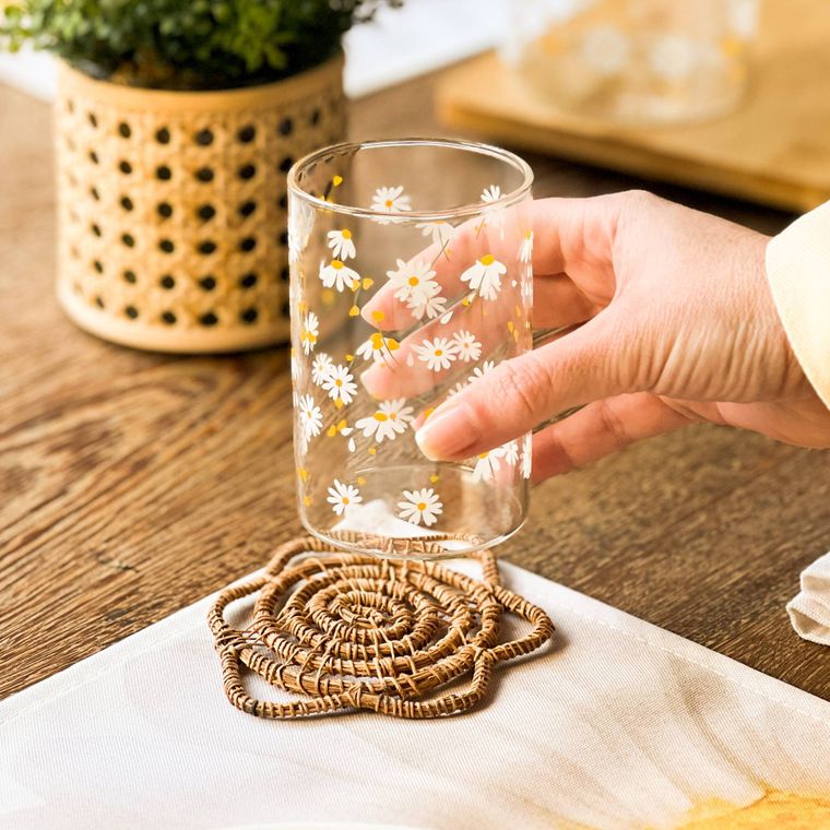 Decorada com um padrão delicado de margaridas, trazendo a delicadeza e elegância das flores para este copo. Feita de vidro borossilicato, resistente e durável, um material de extrema qualidade. Com um design moderno, tendo capacidade de 280ml sendo prático para uso diário. Essa peça vai se destacar em sua mesa com todo o charme beleza e funcionalidade que ela traz!
