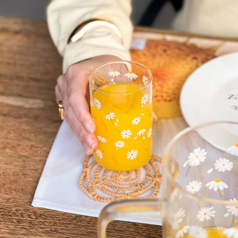 - Contém - 2 Copos de Vidro Borossilicato 280ML - Coleção Margaridas