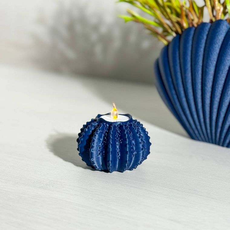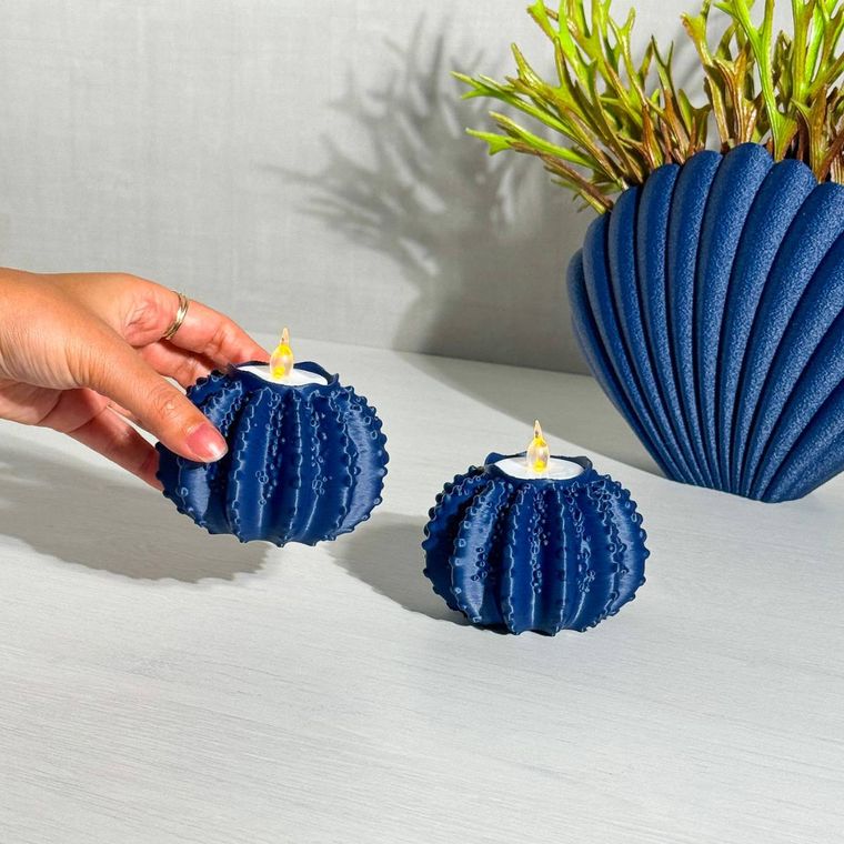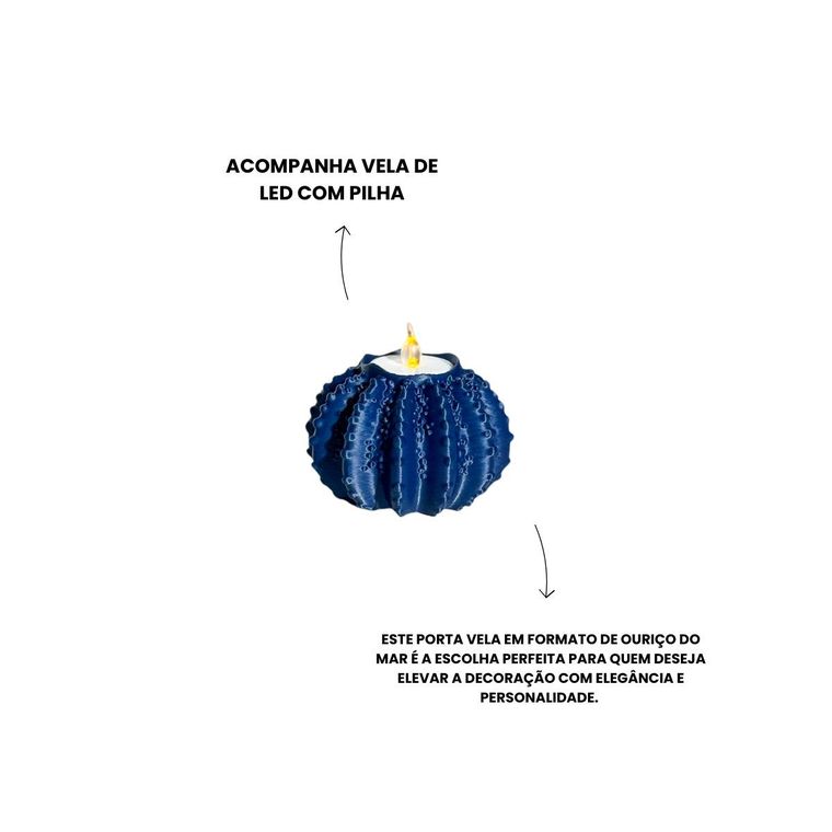 Kit 2 Porta Velas Ouriços do Mar Azul Marinho - Coleção Peixes