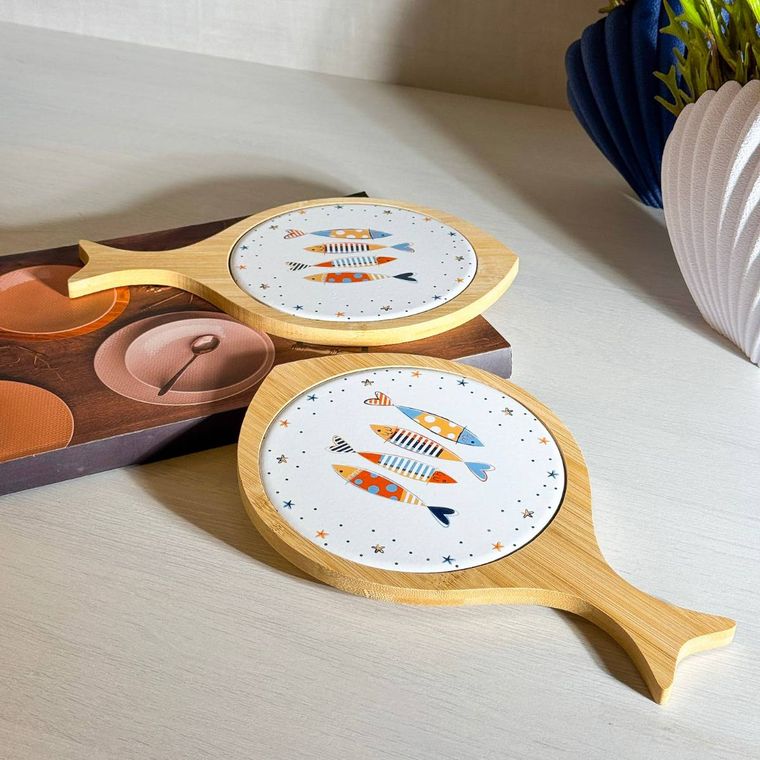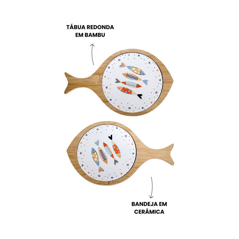 Kit 2 Tábuas Formato de Peixe em Bambu e Cerâmica - Coleção Peixes