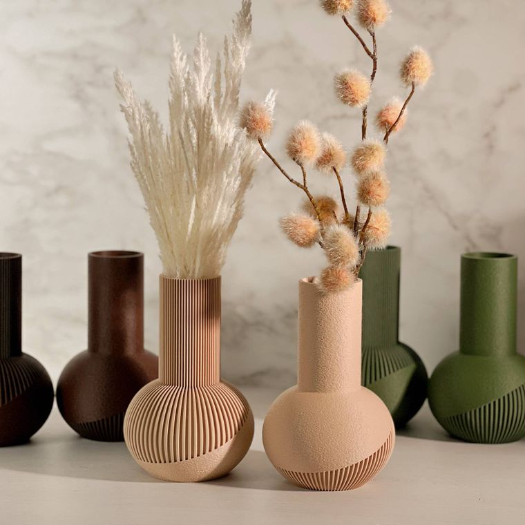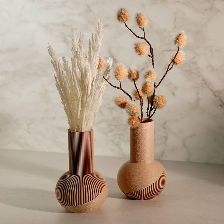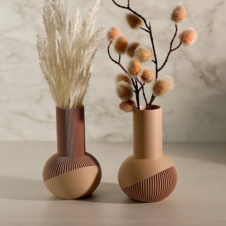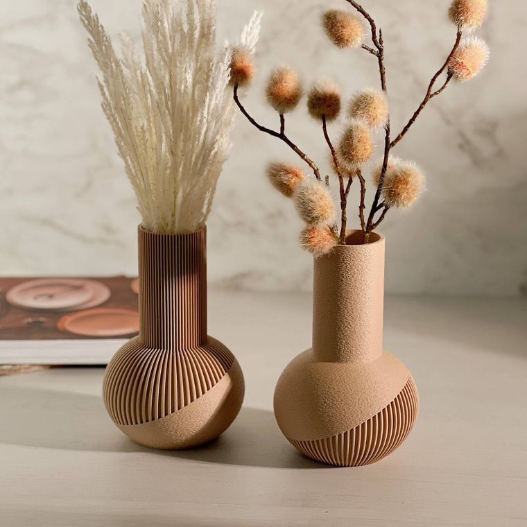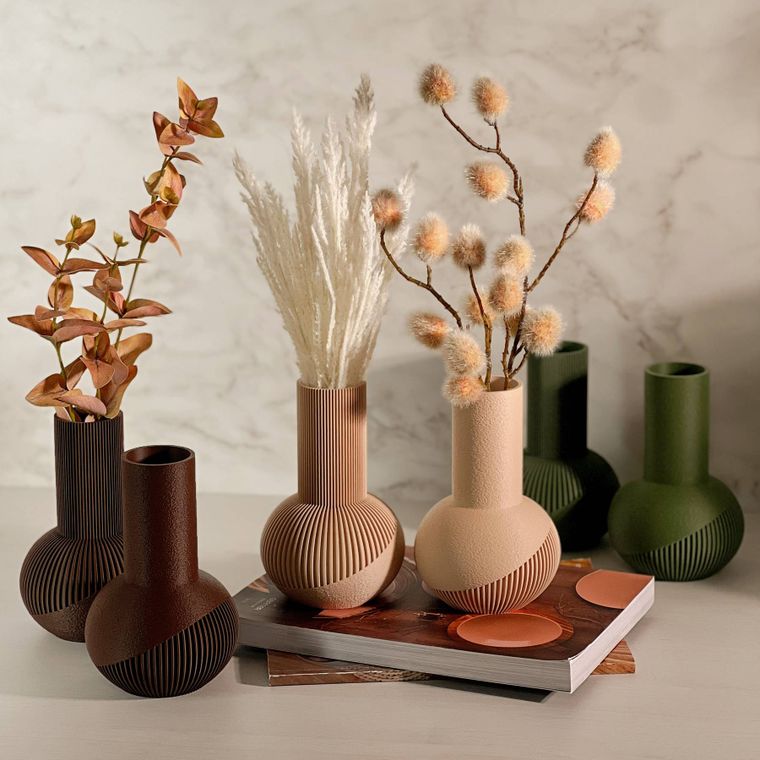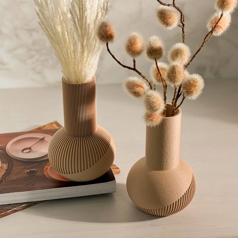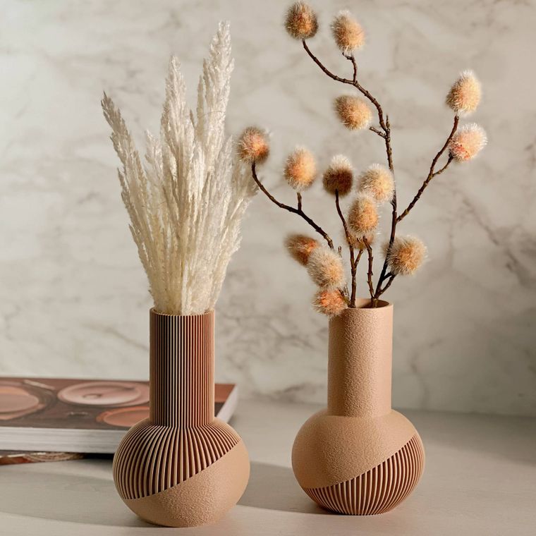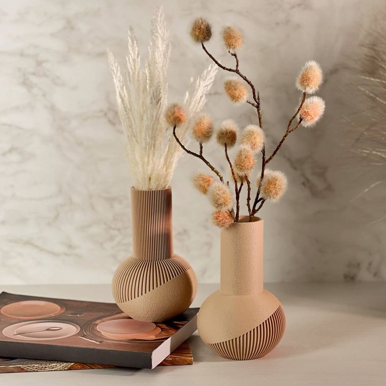 Se encante com a beleza desses vasos! Cada peça apresenta um design contemporâneo que combina o corpo esférico com pescoço cilíndrico, criando uma silhueta sofisticada e equilibrada. A textura dupla, que se complementa, adiciona profundidade, movimento e um toque artístico que se destaca em decoração minimalista, moderna, boho entre muitas outras. Produzido em PLA, um material ecológico derivado de fontes renováveis, ele combina leveza. Ideal para compor ambientes com elegância — seja com flores secas, artificiais ou como peça decorativa solo.
