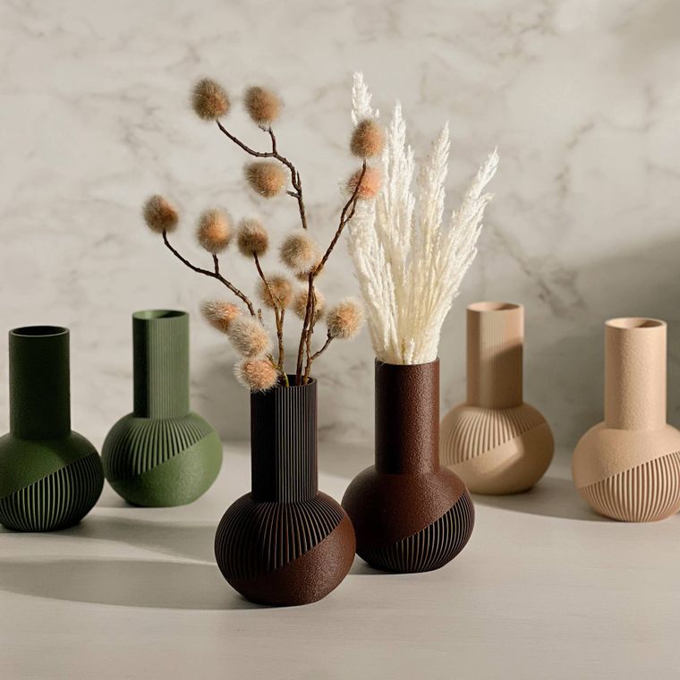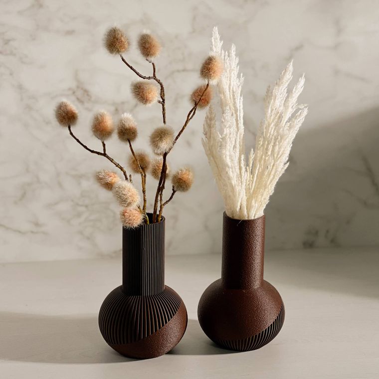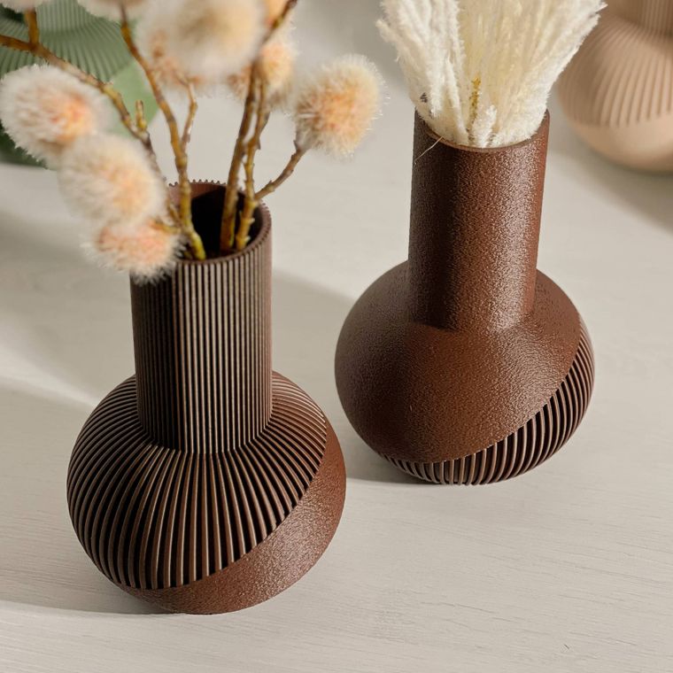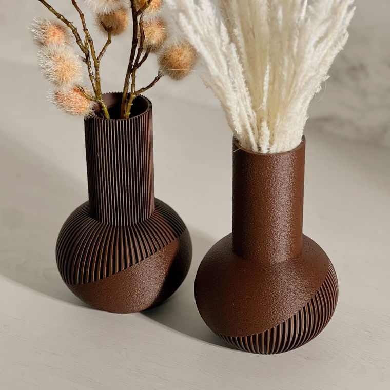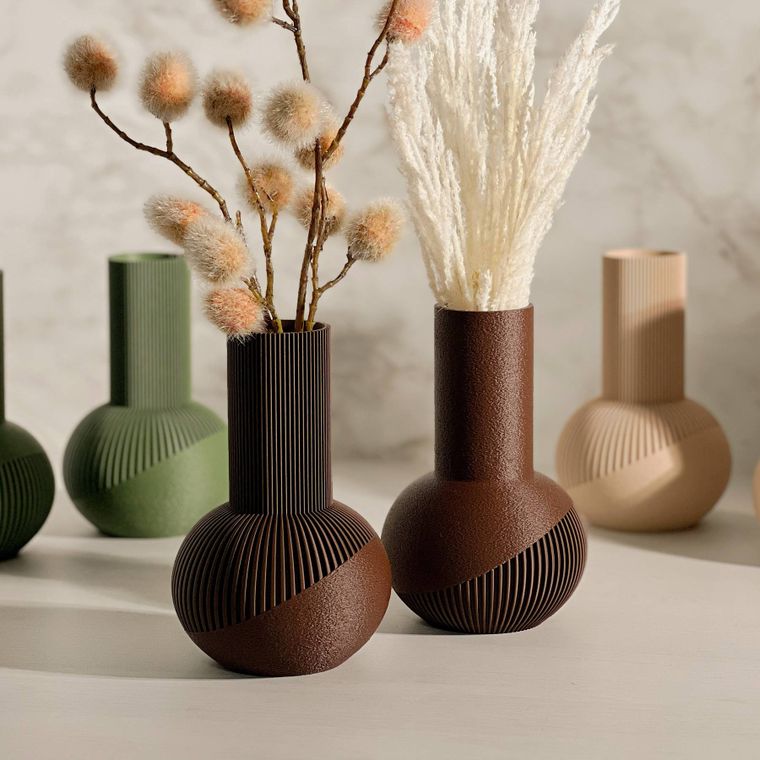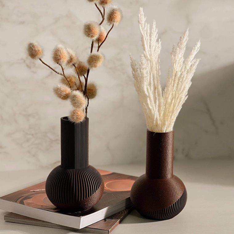 Se encante com a beleza desses vasos! Cada peça apresenta um design contemporâneo que combina o corpo esférico com pescoço cilíndrico, criando uma silhueta sofisticada e equilibrada. A textura dupla, que se complementa, adiciona profundidade, movimento e um toque artístico que se destaca em decoração minimalista, moderna, boho entre muitas outras. Produzido em PLA, um material ecológico derivado de fontes renováveis, ele combina leveza. Ideal para compor ambientes com elegância — seja com flores secas, artificiais ou como peça decorativa solo.