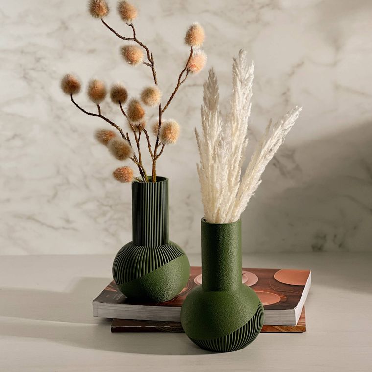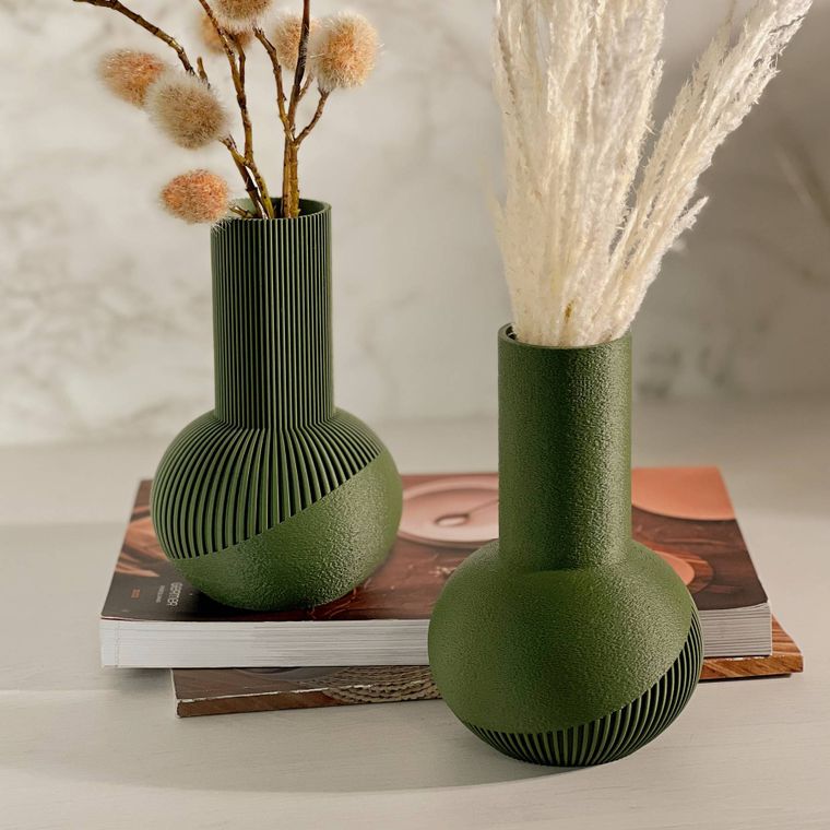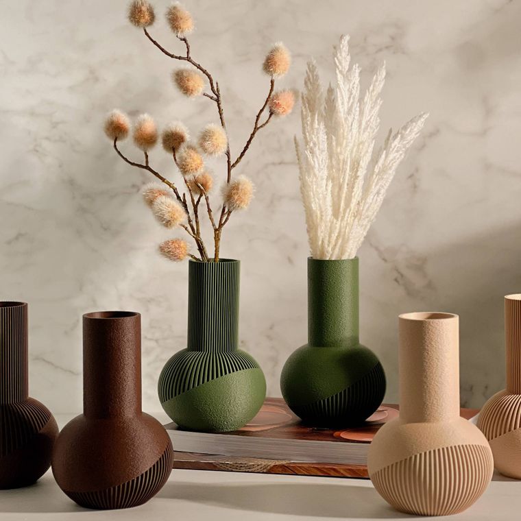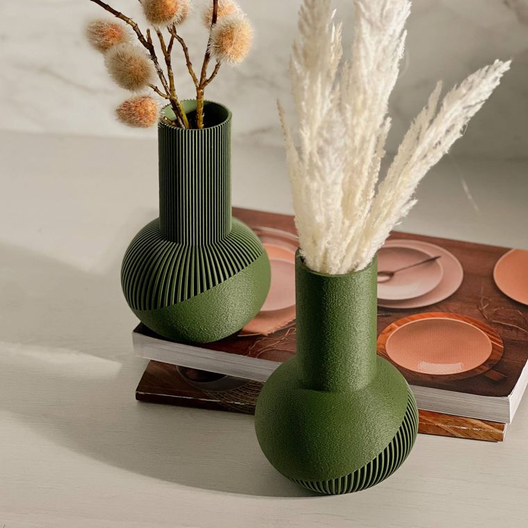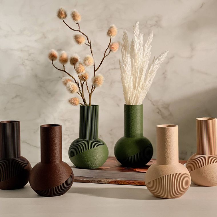 Se encante com a beleza desses vasos! Cada peça apresenta um design contemporâneo que combina o corpo esférico com pescoço cilíndrico, criando uma silhueta sofisticada e equilibrada. A textura dupla, que se complementa, adiciona profundidade, movimento e um toque artístico que se destaca em decoração minimalista, moderna, boho entre muitas outras. Produzido em PLA, um material ecológico derivado de fontes renováveis, ele combina leveza. Ideal para compor ambientes com elegância — seja com flores secas, artificiais ou como peça decorativa solo.