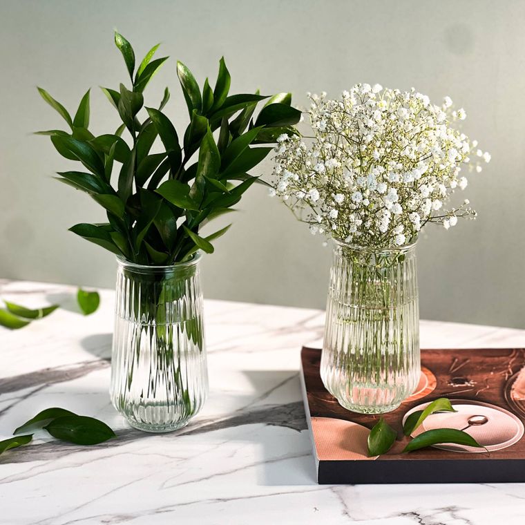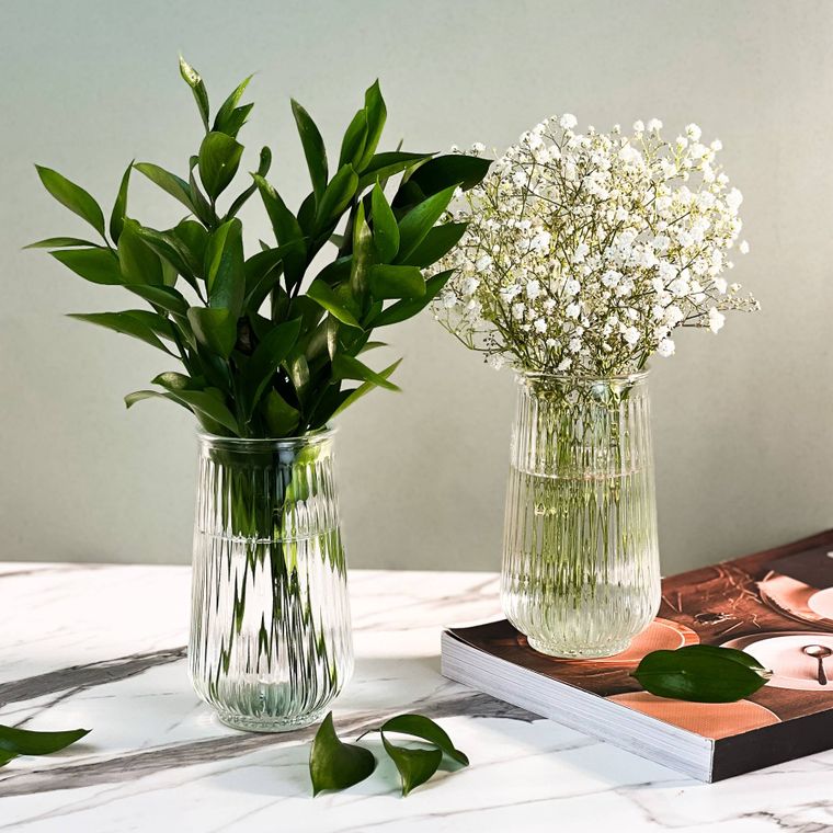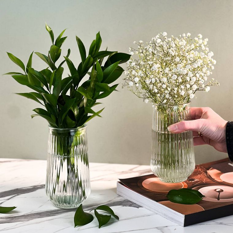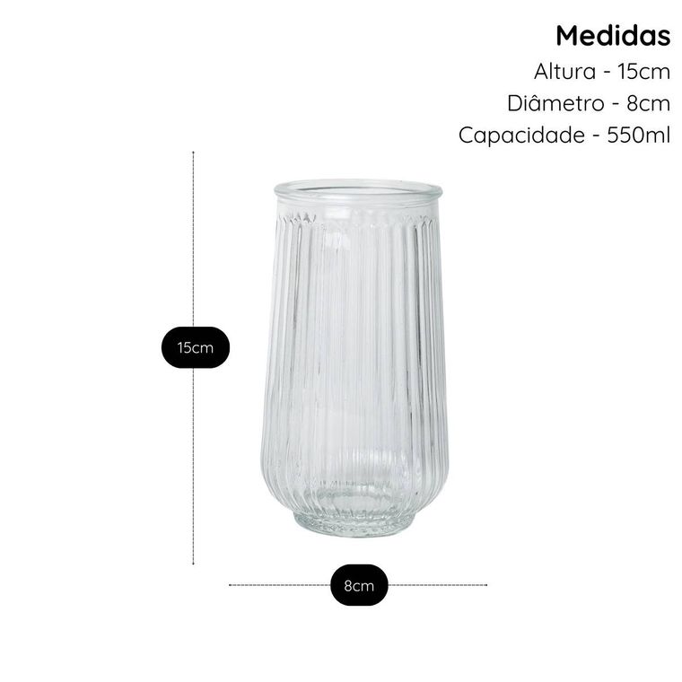 - Contém - 2 Vasos de Vidro Slim Canelado 15cm - 550ml