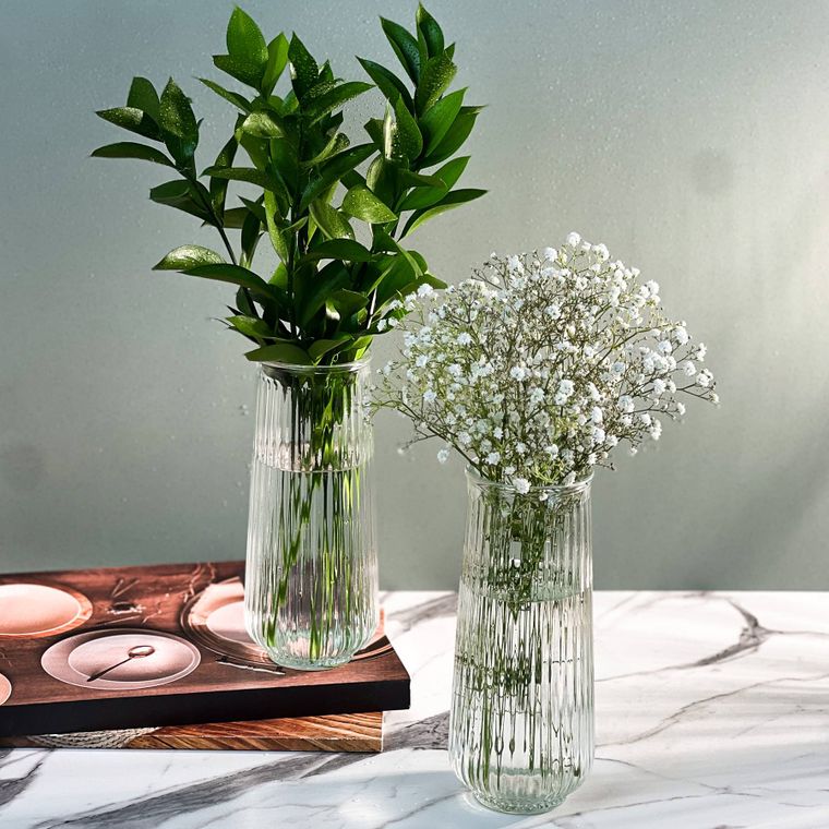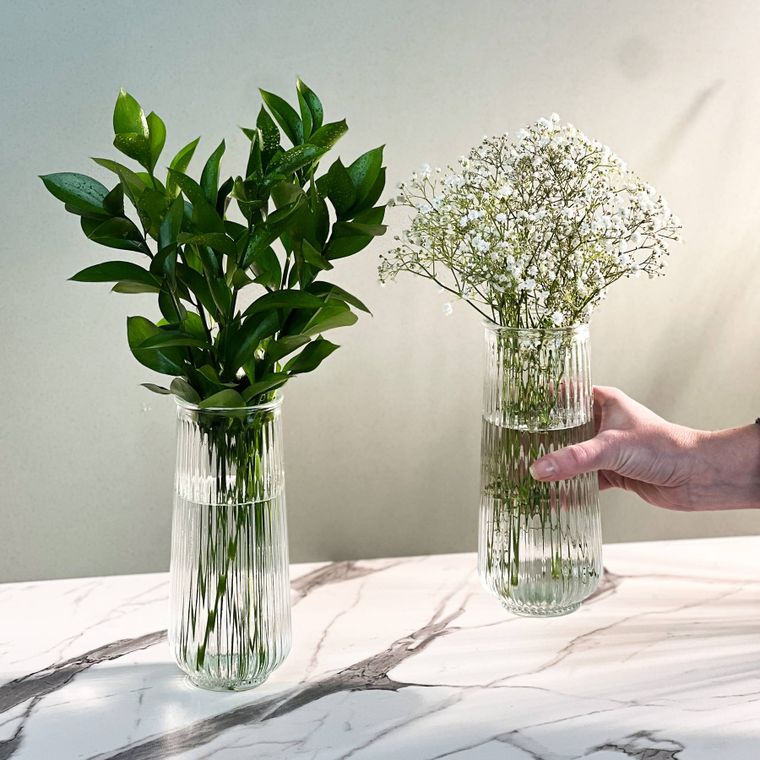 - Contém - 2 Vasos de Vidro Slim Canelado 20cm - 750ml