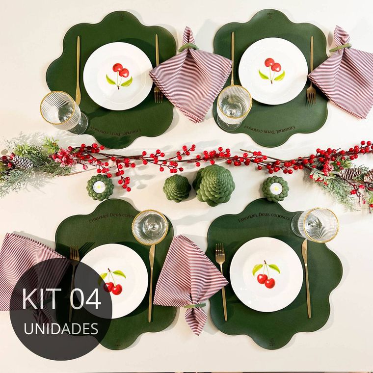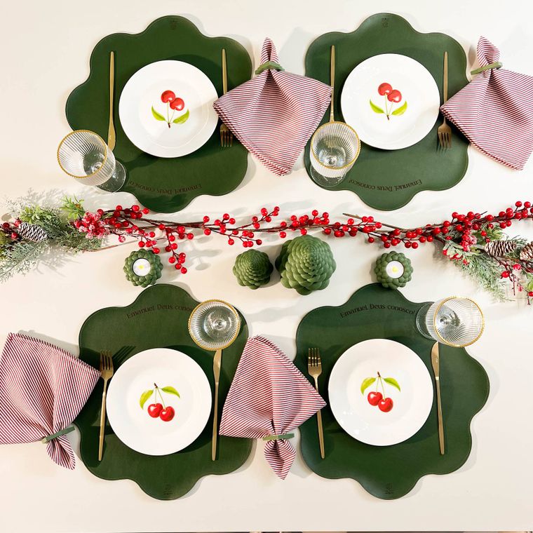Kit 4 Americanos em Couro Ecológico Verde - Coleção Emanuel
