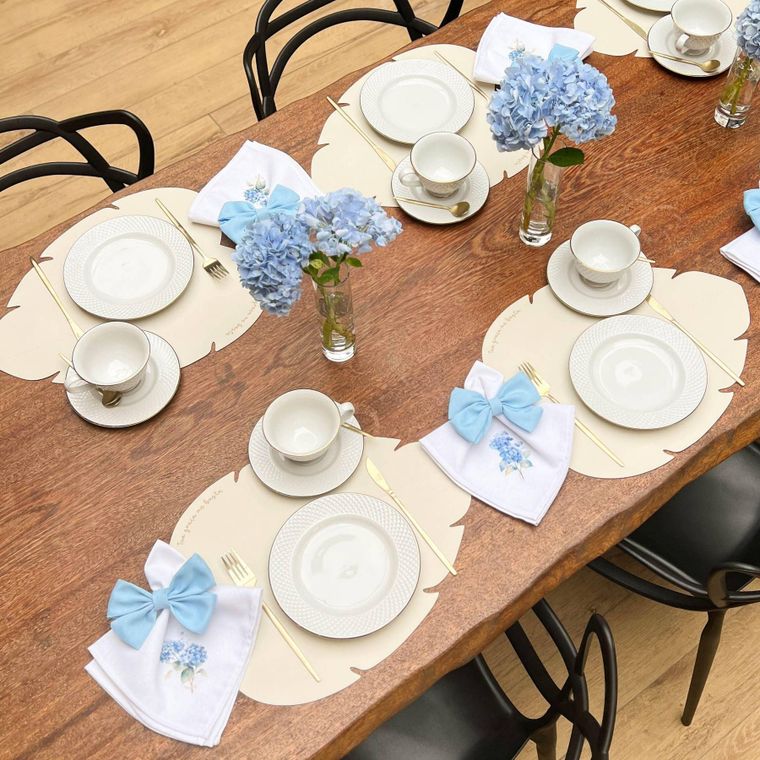 - Roupas de mesa são peças delicadas, portanto a orientação é lavagem a mão e sem molho, não colocar na secadora.