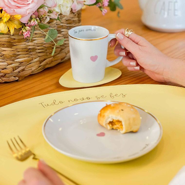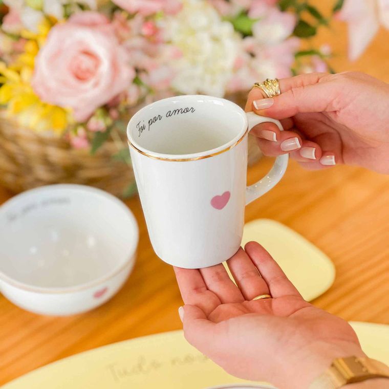 Kit 4 Canecas de Porcelana com Filete de Ouro - Coleção Foi Por Amor