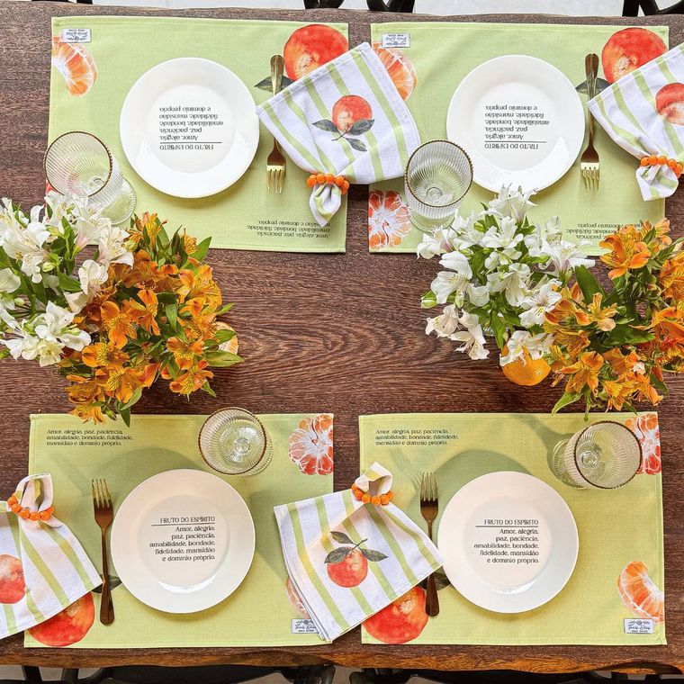 - Roupas de mesa são peças delicadas, portanto a orientação é lavagem a mão e sem molho, não colocar na secadora.