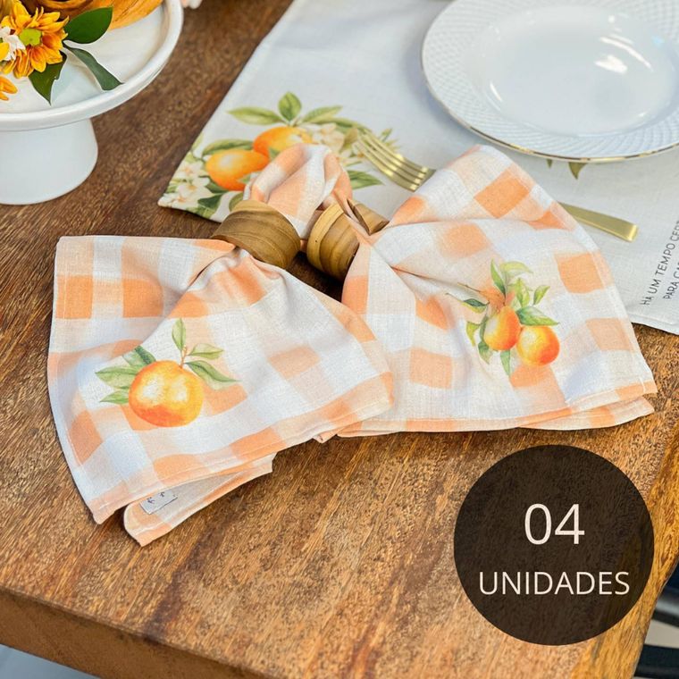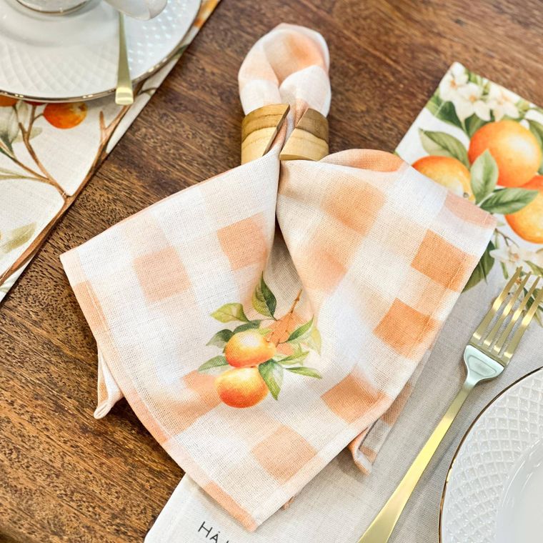 Kit 4 Guardanapos de Linho Xadrez Coleção Colheita - Laranjas