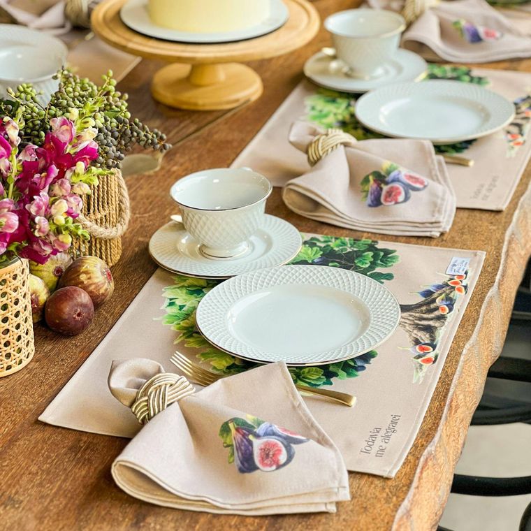 Kit 4 Guardanapos em Linho Misto - Coleção Figueira