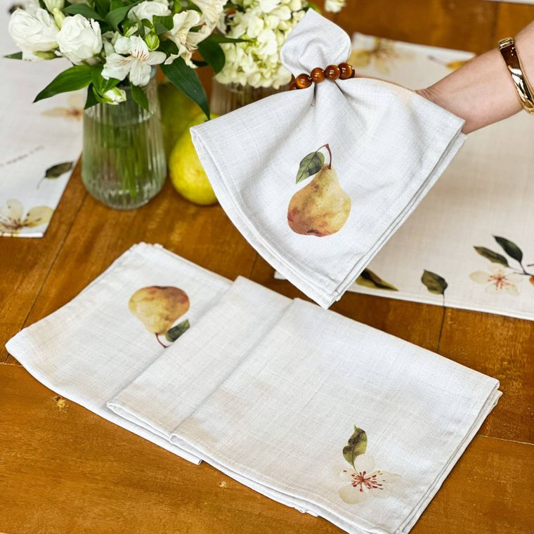 Kit 4 Guardanapos em Linho Misto - Coleção Peras