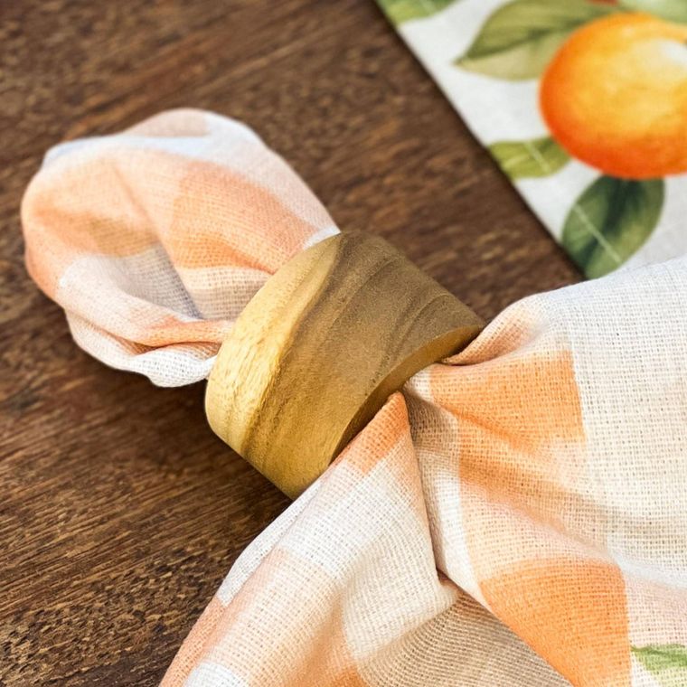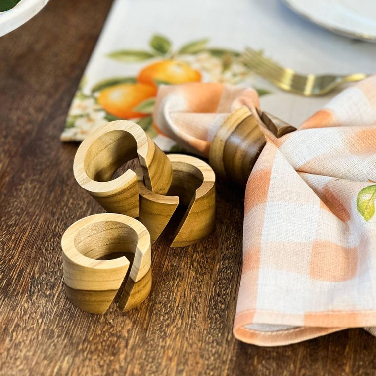 Kit 4 Porta Guardanapos Redondo em Madeira Teca - Coleção Colheita