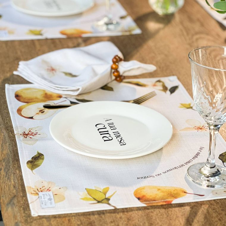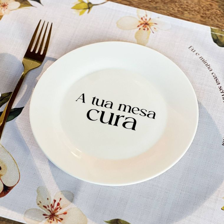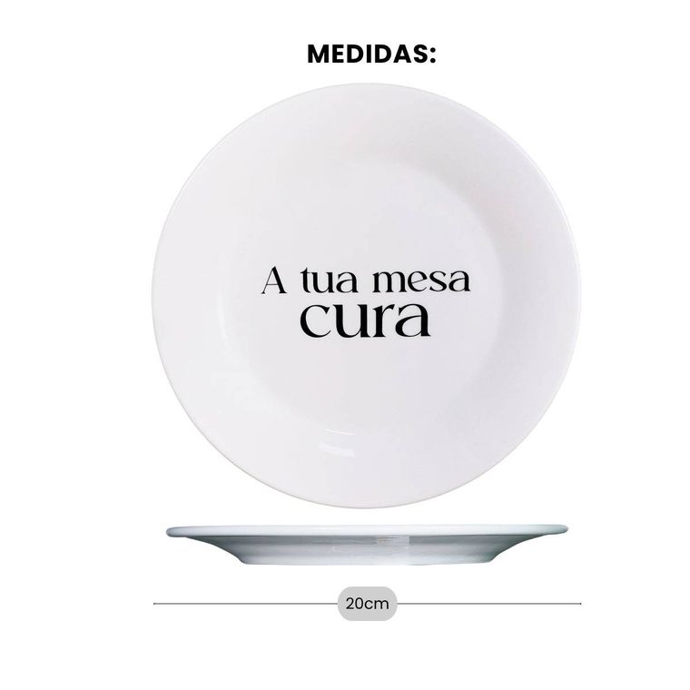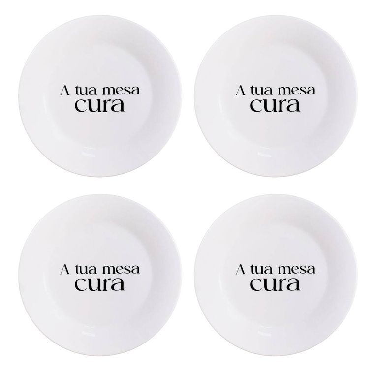 Kit 4 Pratos de Sobremesa com Frase "A tua mesa cura"
