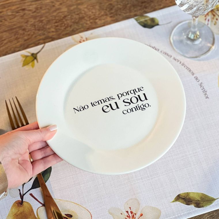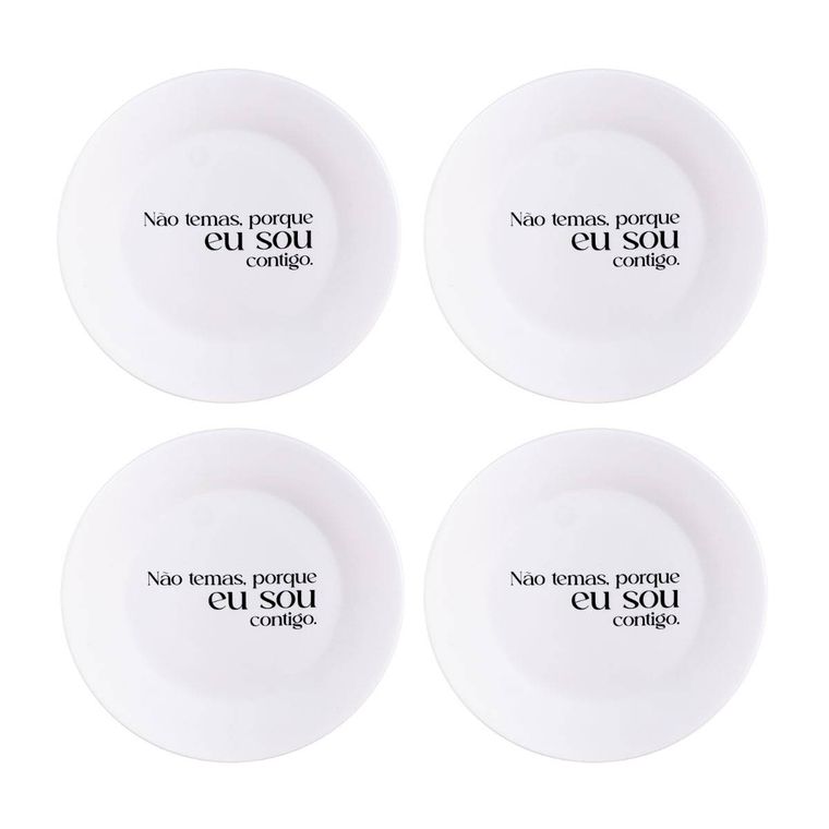 Kit 4 Pratos de Sobremesa com Frase "Não temas..."
