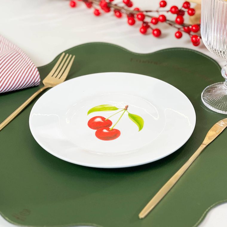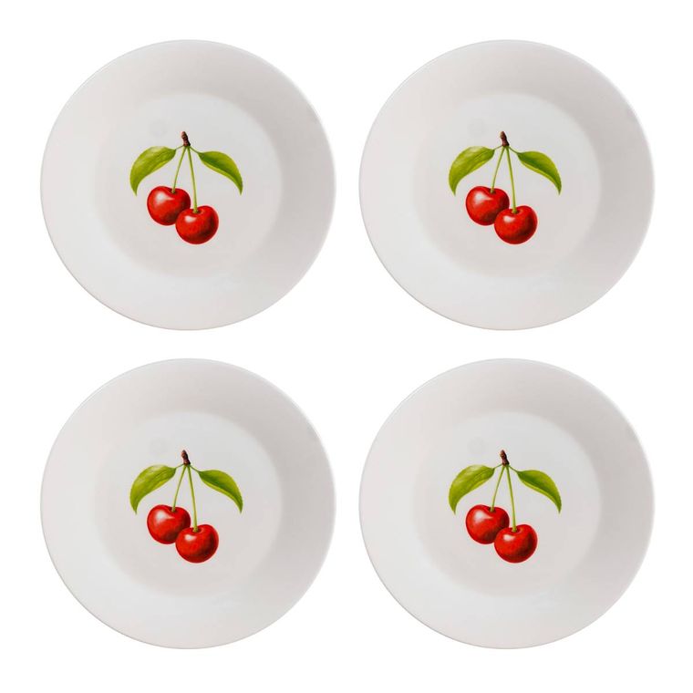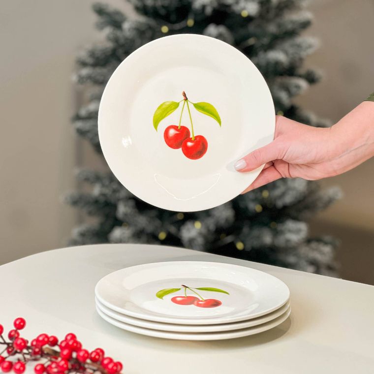 Kit 4 Pratos de Sobremesa de Porcelana - Coleção Cerejas