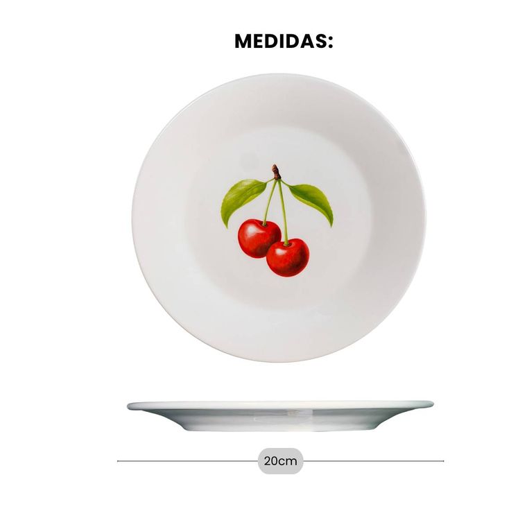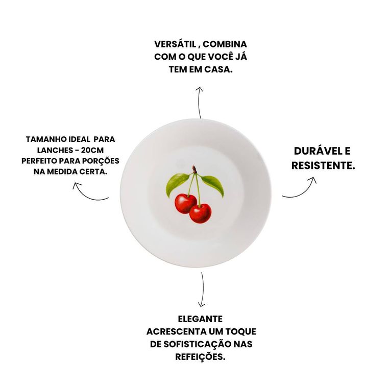 - Contém - 4 Pratos de Sobremesa em Porcelana - Coleção Cerejas