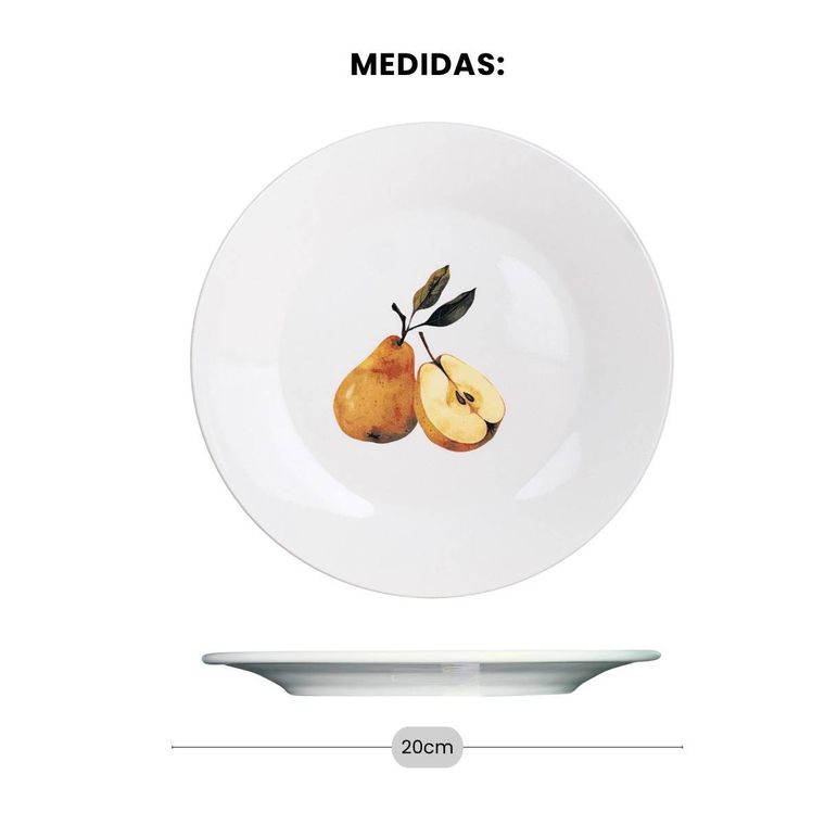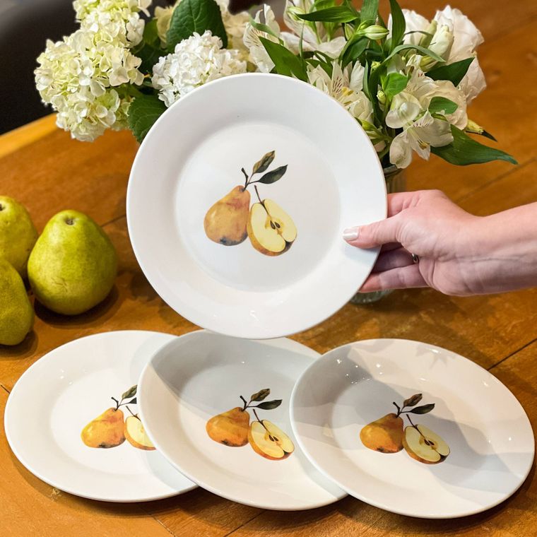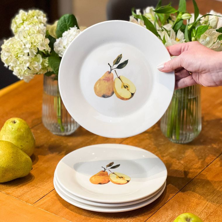 Kit 4 Pratos de Sobremesa de Porcelana - Coleção Peras