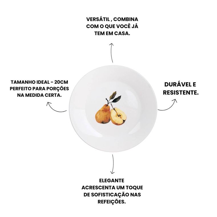 - Contém - 4 Pratos de Sobremesa em Porcelana - Coleção Peras