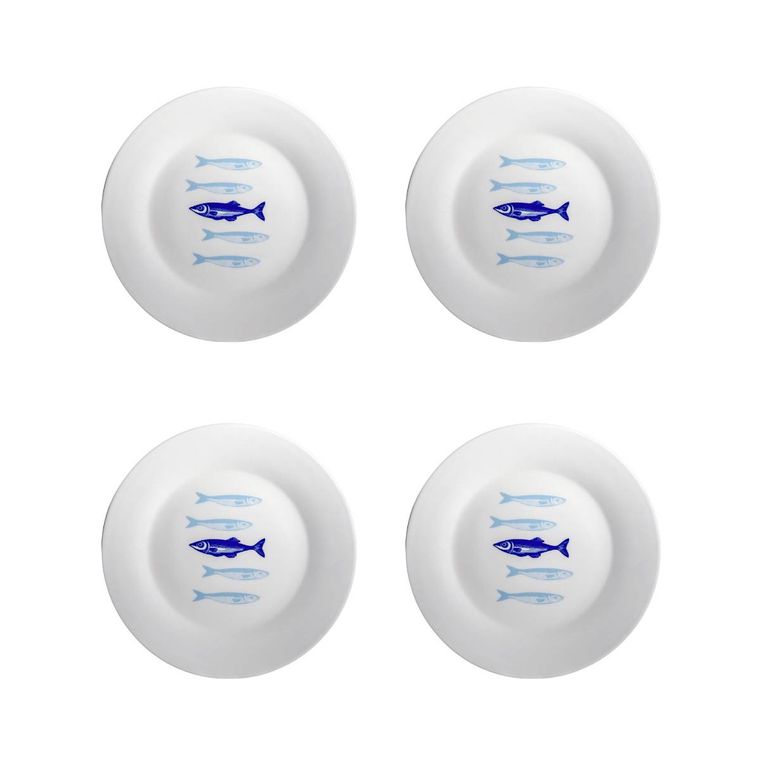 Kit 4 Pratos de Sobremesa de Porcelana Peixes - Coleção Peixes