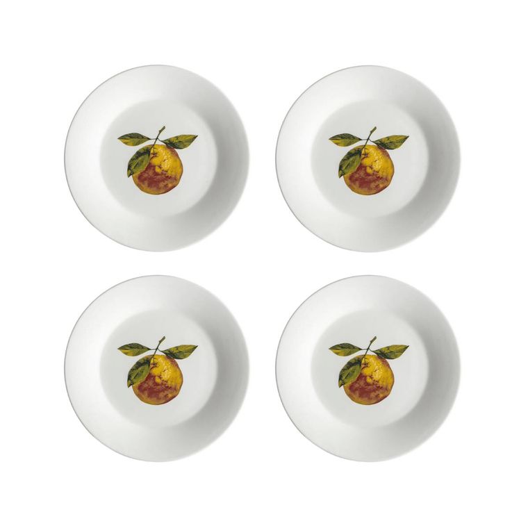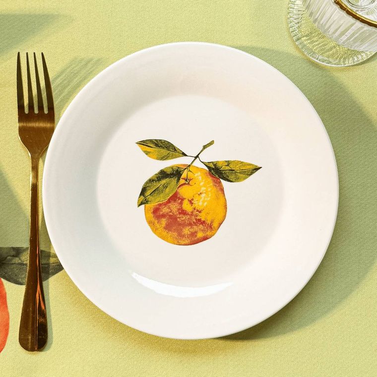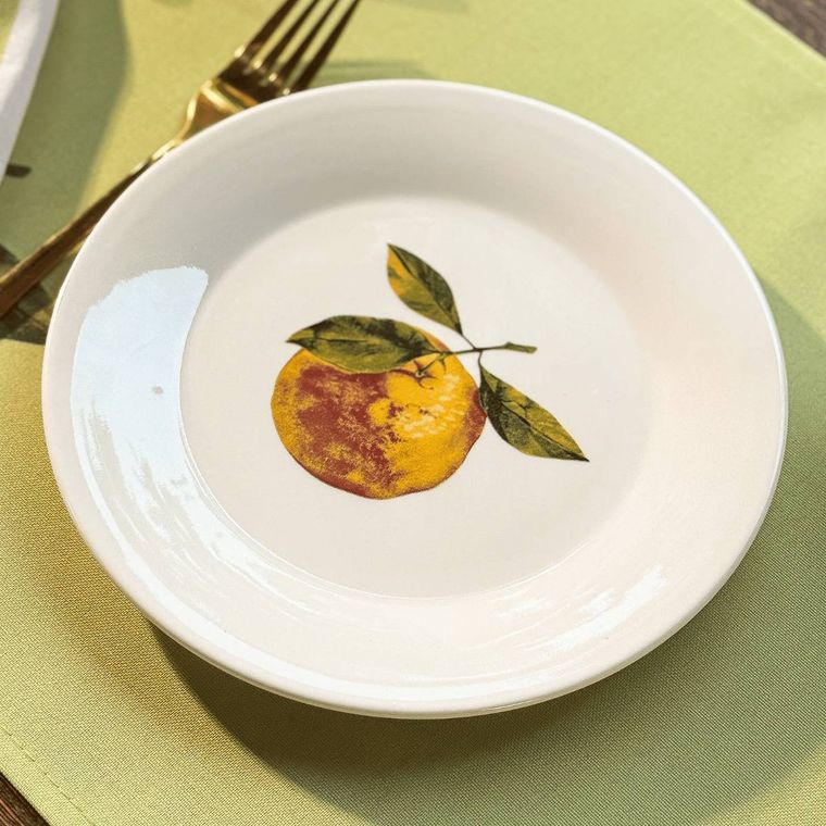 Kit 4 Pratos de Sobremesa de Porcelana Tangerina - Coleção Tangerinas