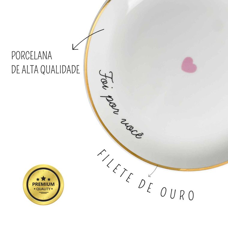 Feita de porcelana Fina, filetada a ouro 18k, delicada e requintada como uma verdadeira joia preciosa.