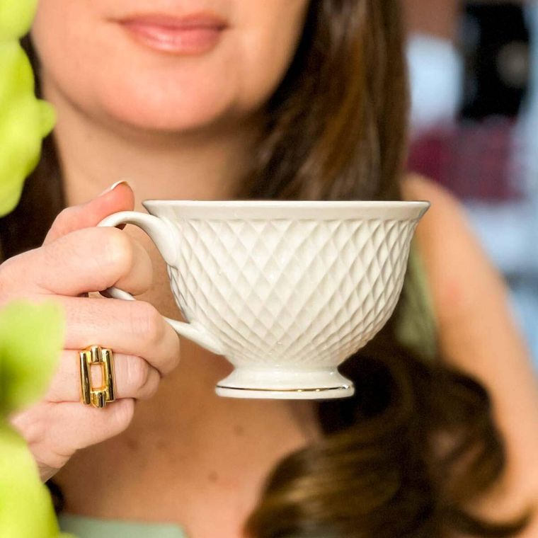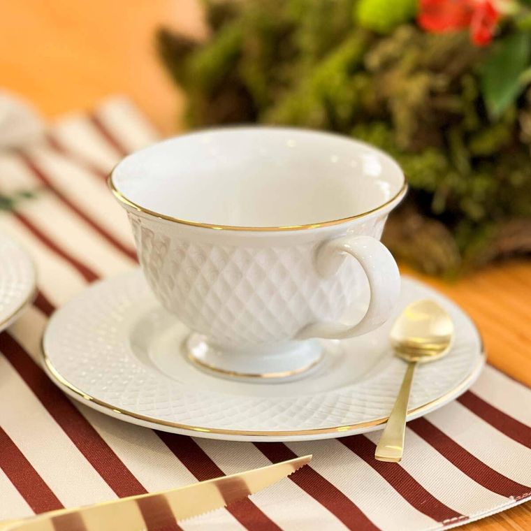 Elegância e sofisticação definem a Xícara de Café com Pires em porcelana branca Coleção Realeza, tem como detalhe um delicado fio dourado ao redor das bordas. Com um design clássico e refinado, é a escolha perfeita para ocasiões especiais ou para trazer um toque de requinte ao dia a dia. Feito em porcelana de alta qualidade, oferece durabilidade e um brilho natural, enquanto o detalhe em dourado confere um ar nobre à peça. Ideal para compor uma mesa sofisticada e proporcionar uma experiência gastronômica inesquecível.