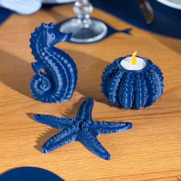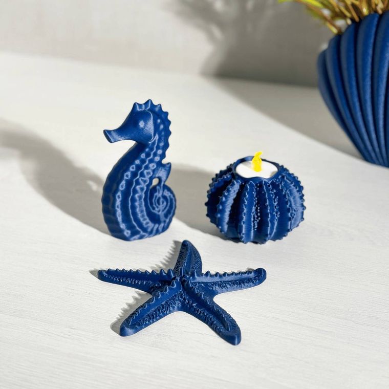 Kit decorativo composto por peças cheias de charme e riqueza de detalhes, perfeito para transformar qualquer ambiente. Com estrela do mar, cavalo marinho e porta vela em formato de ouriço, o conjunto traz elegância, aconchego e um toque sofisticado do fundo do mar. Ideal para mesa posta, aparadores, estantes ou para compor a decoração da casa, esse kit cria uma atmosfera leve e acolhedora, remetendo à tranquilidade do oceano e valorizando cada detalhe do espaço.