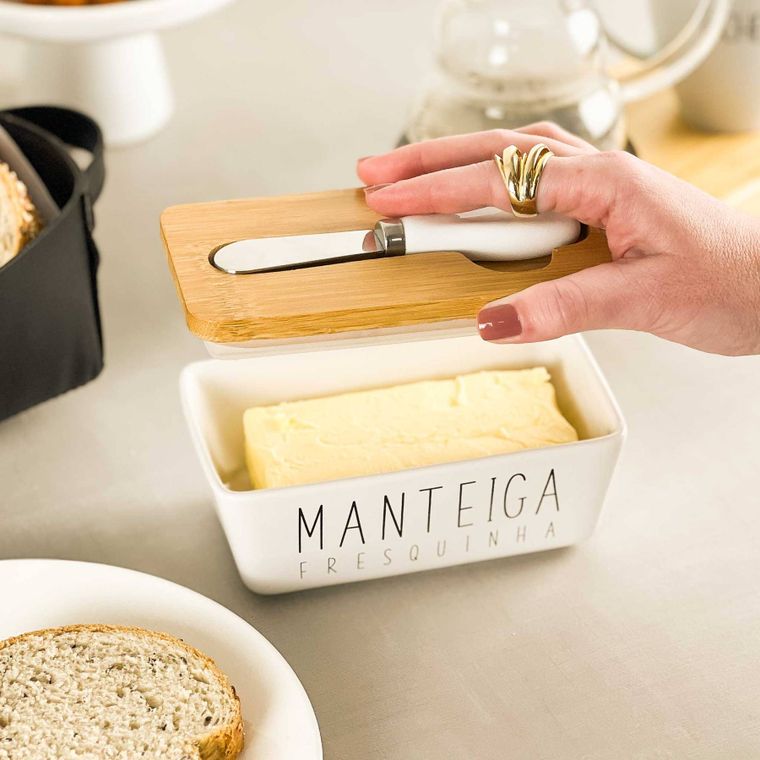 - Material da manteigueira - Porcelana, Bambu e Silicone