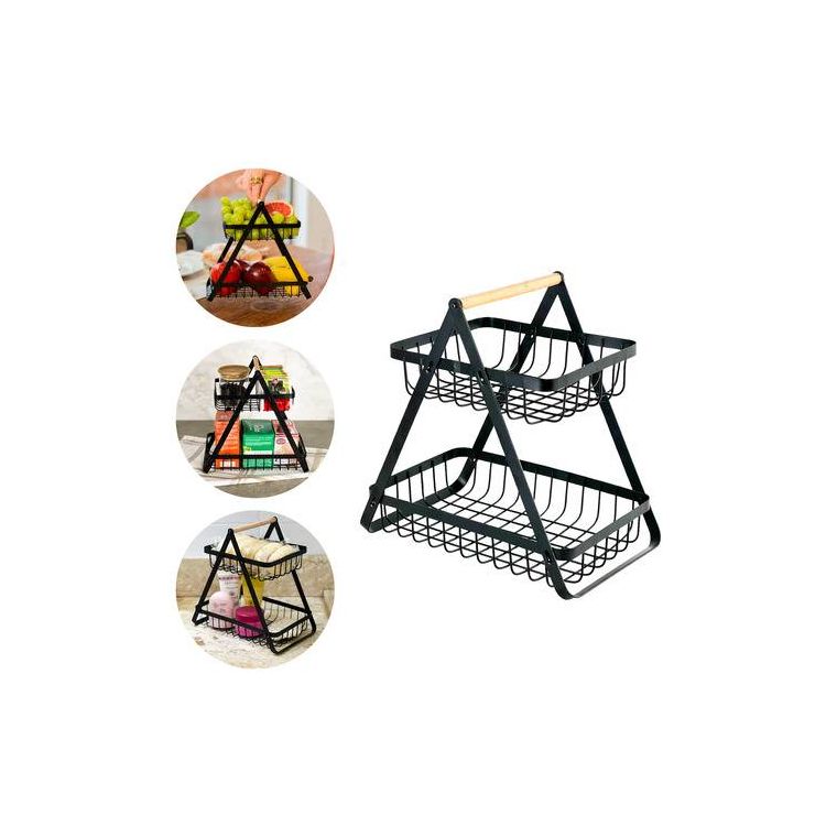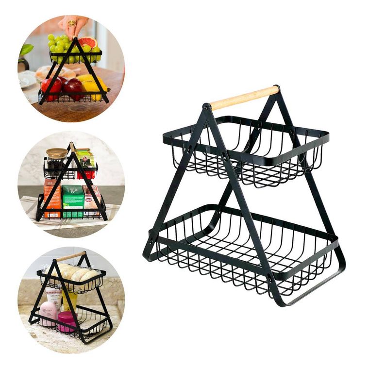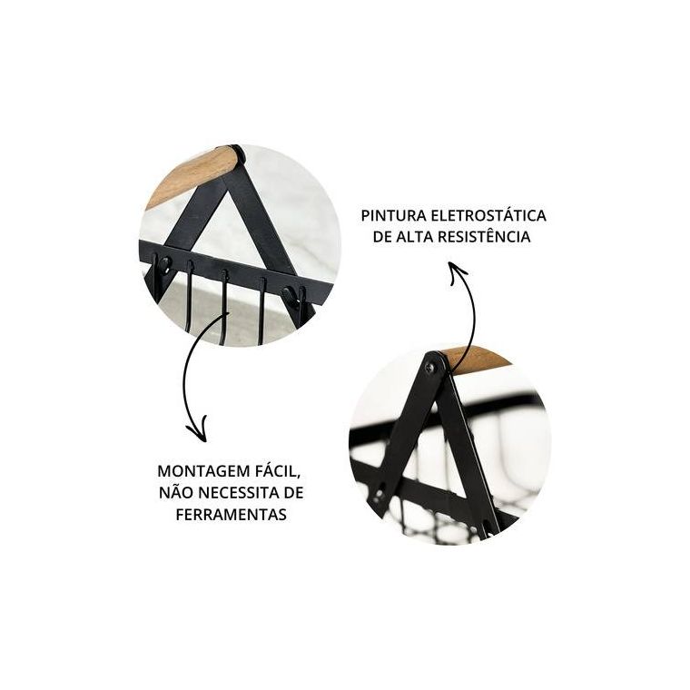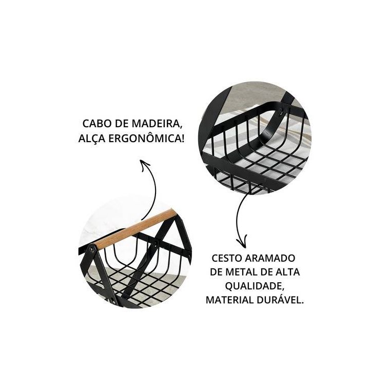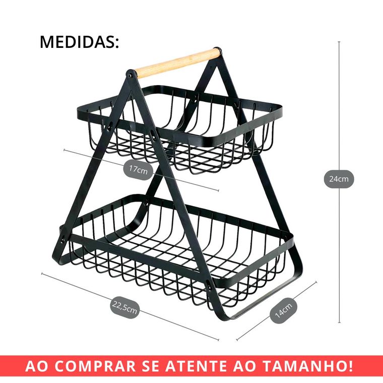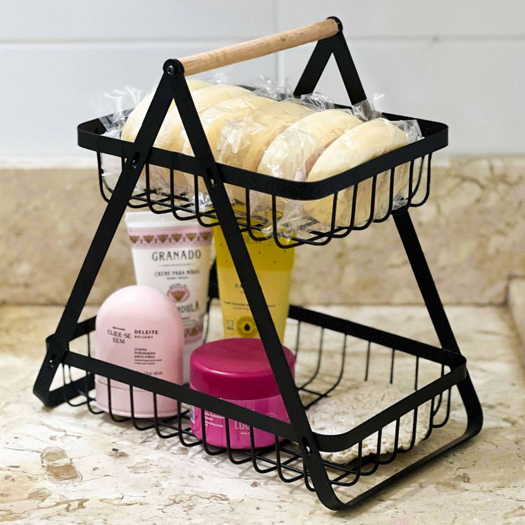 Organizador de Metal Aramado Multiuso Preto Duplo com cabo de Madeira