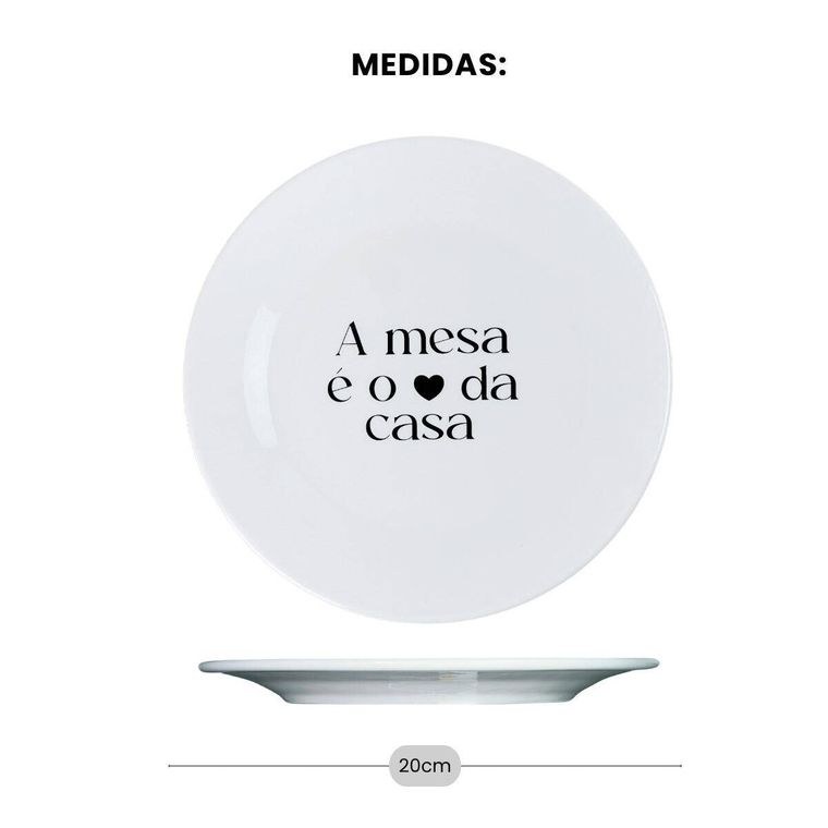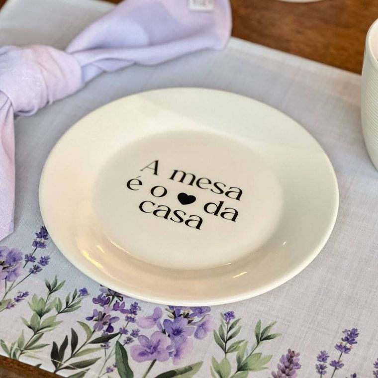 Prato de Sobremesa com frase "A mesa é o coração da casa"