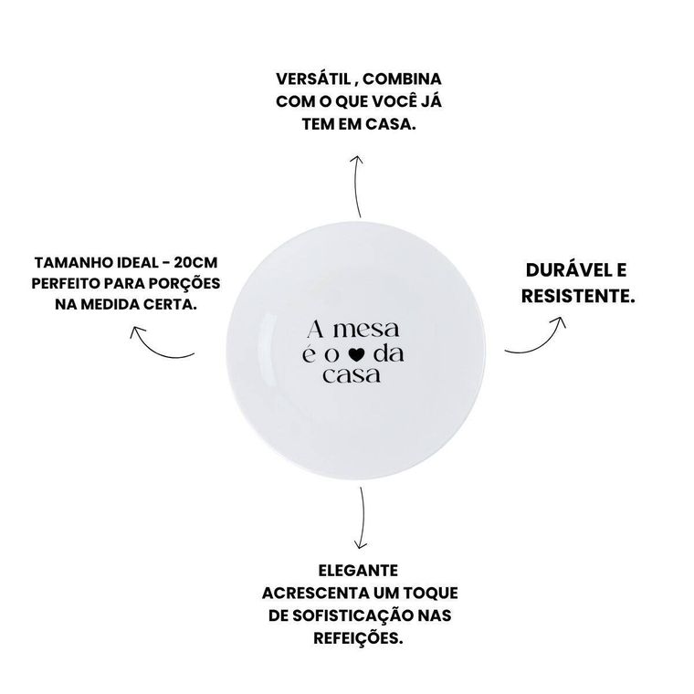 - Contém - Prato de Sobremesa Branco "A mesa é o coração da casa"