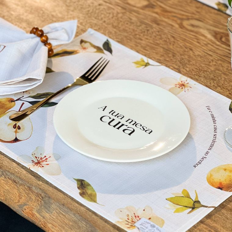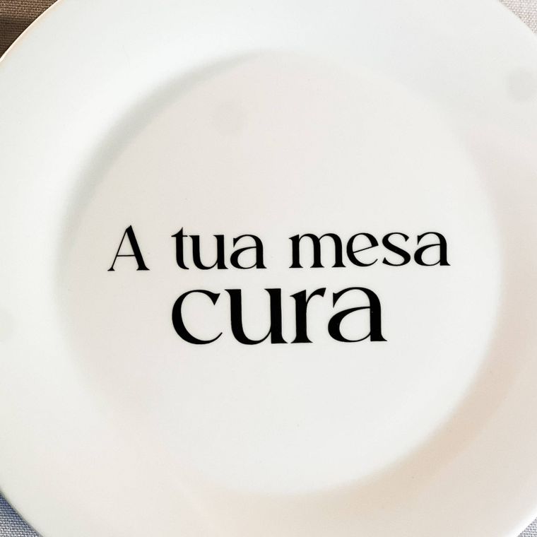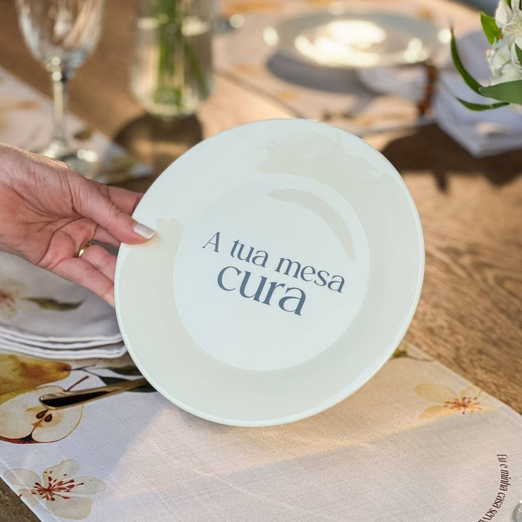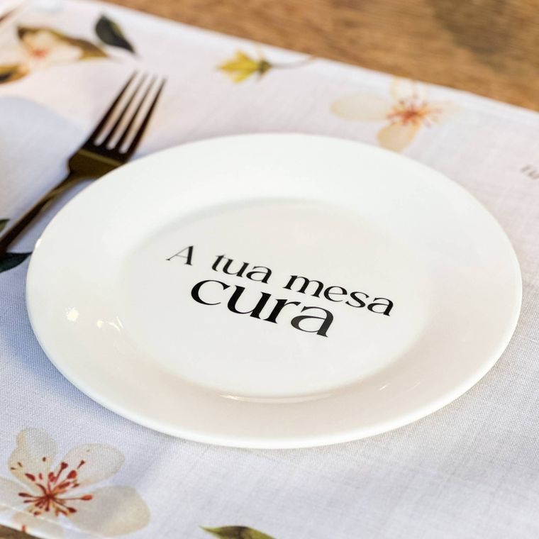 Prato de Sobremesa com Frase "A tua mesa cura"
