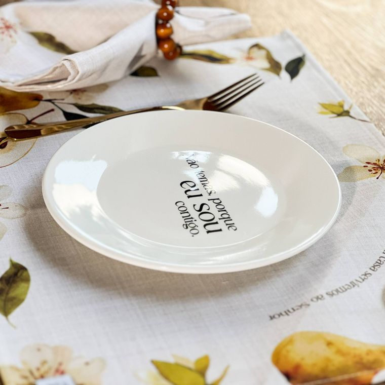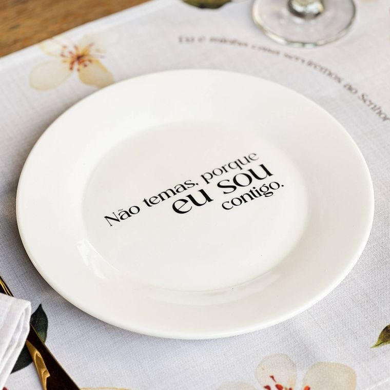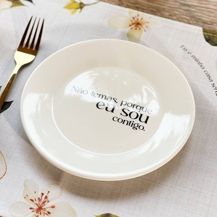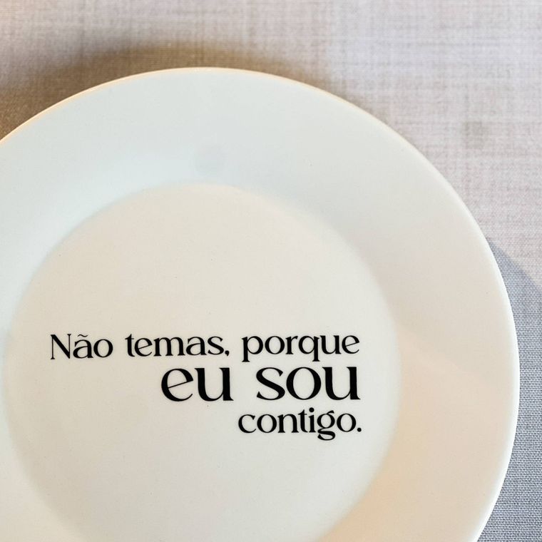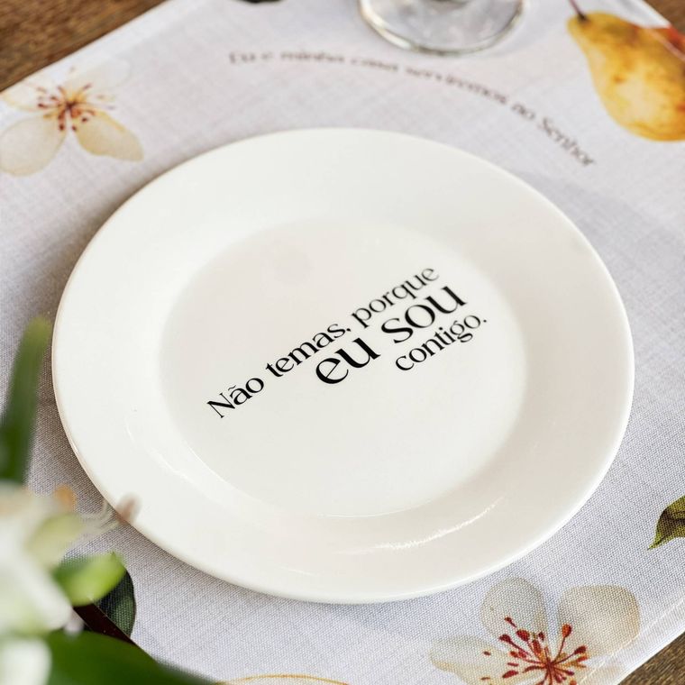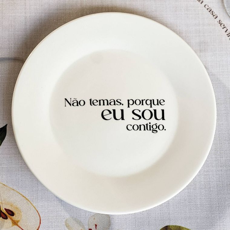 Prato de Sobremesa com Frase "Não temas, porque eu sou contigo"