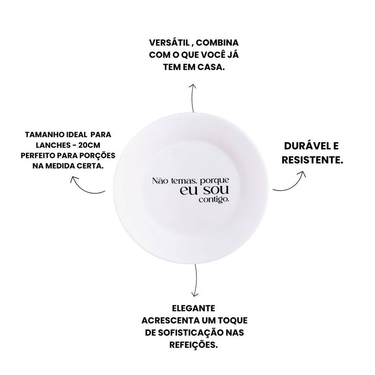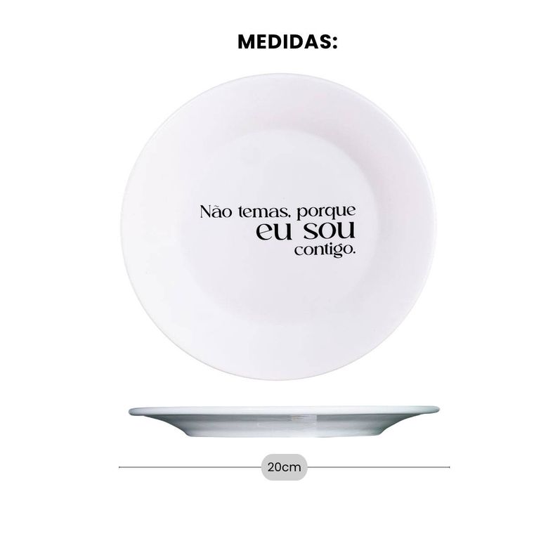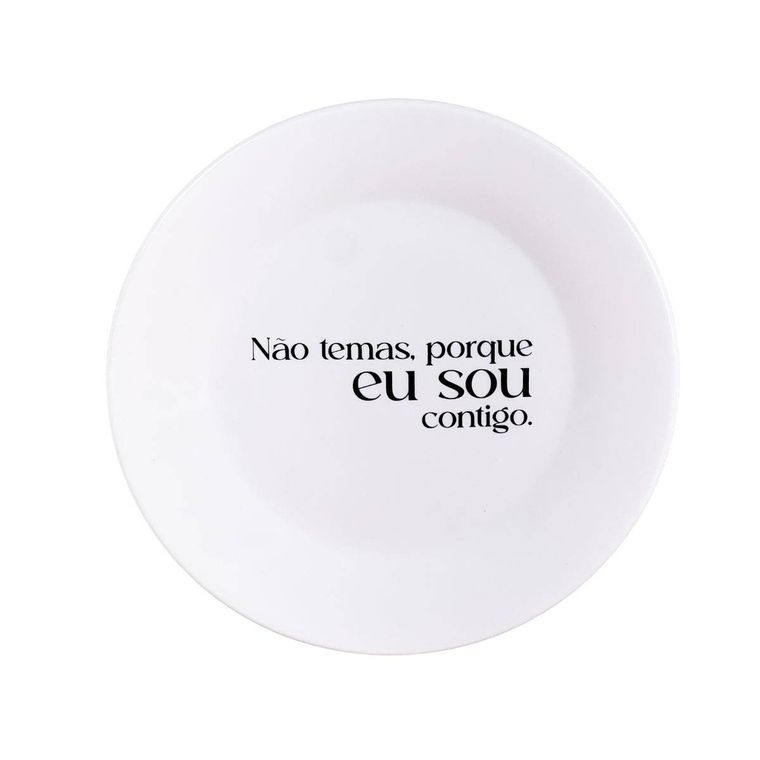 - Contém - 1 Prato de Sobremesa Branco de Porcelana com a Frase "Não temas, porque eu sou contigo"