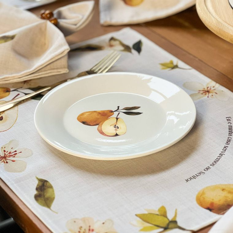 - Contém - 1 Prato de Sobremesa em Porcelana - Coleção Peras